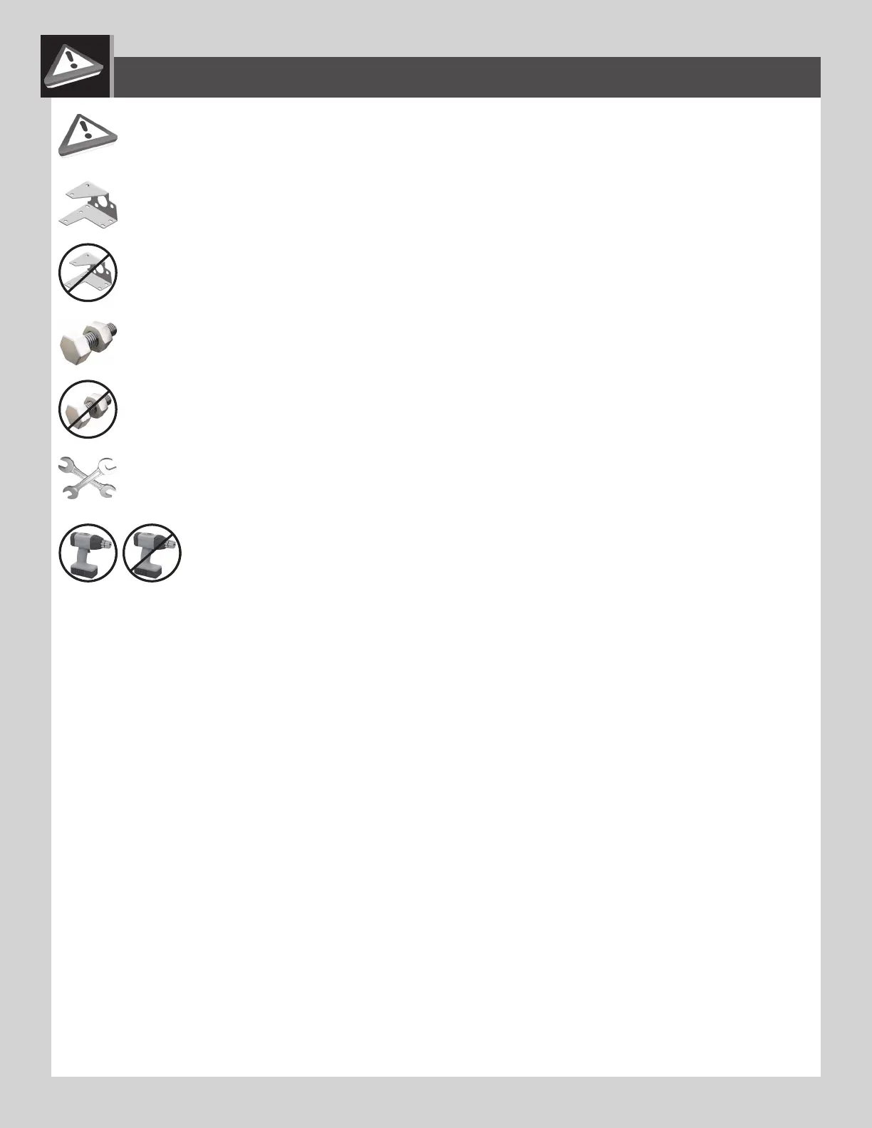 • Indicates to use/not to use an electric drill for a specifi c step.