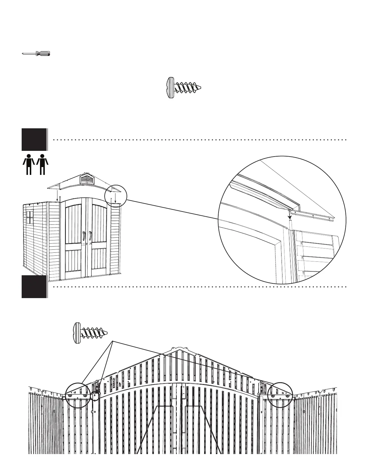 • Secure the Entry Gable to the shed using fi ve (5) Screws (ADZ).