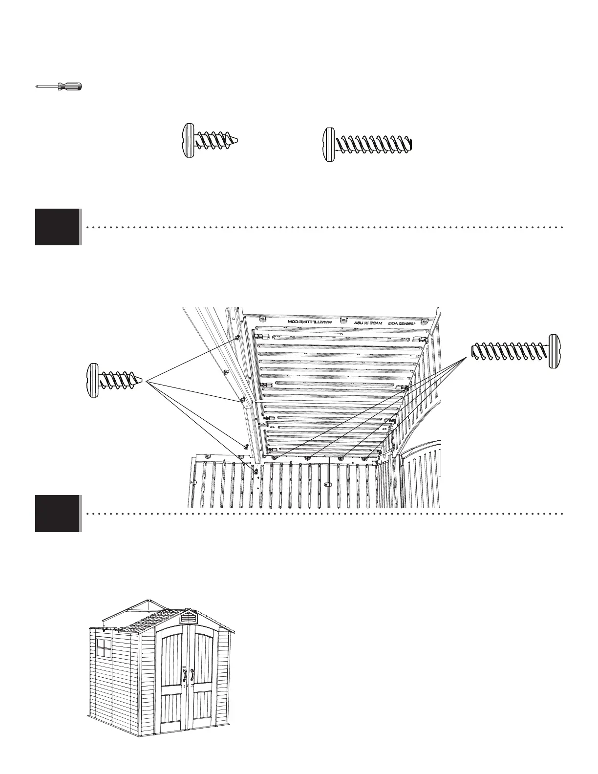 • Set a Truss Assembly into the notches on the second two opposite Wall Panels. Set a Roof Panel onto the Gable,