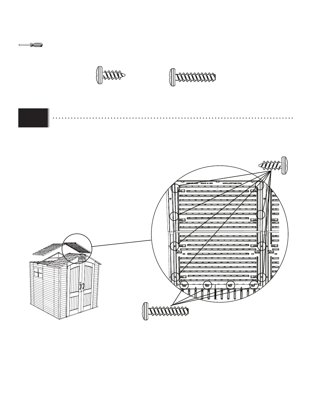 • Repeat the last step for the opposite Roof Panel. Only insert the long Screws (ADV) along the top edge of the Wall Panel.