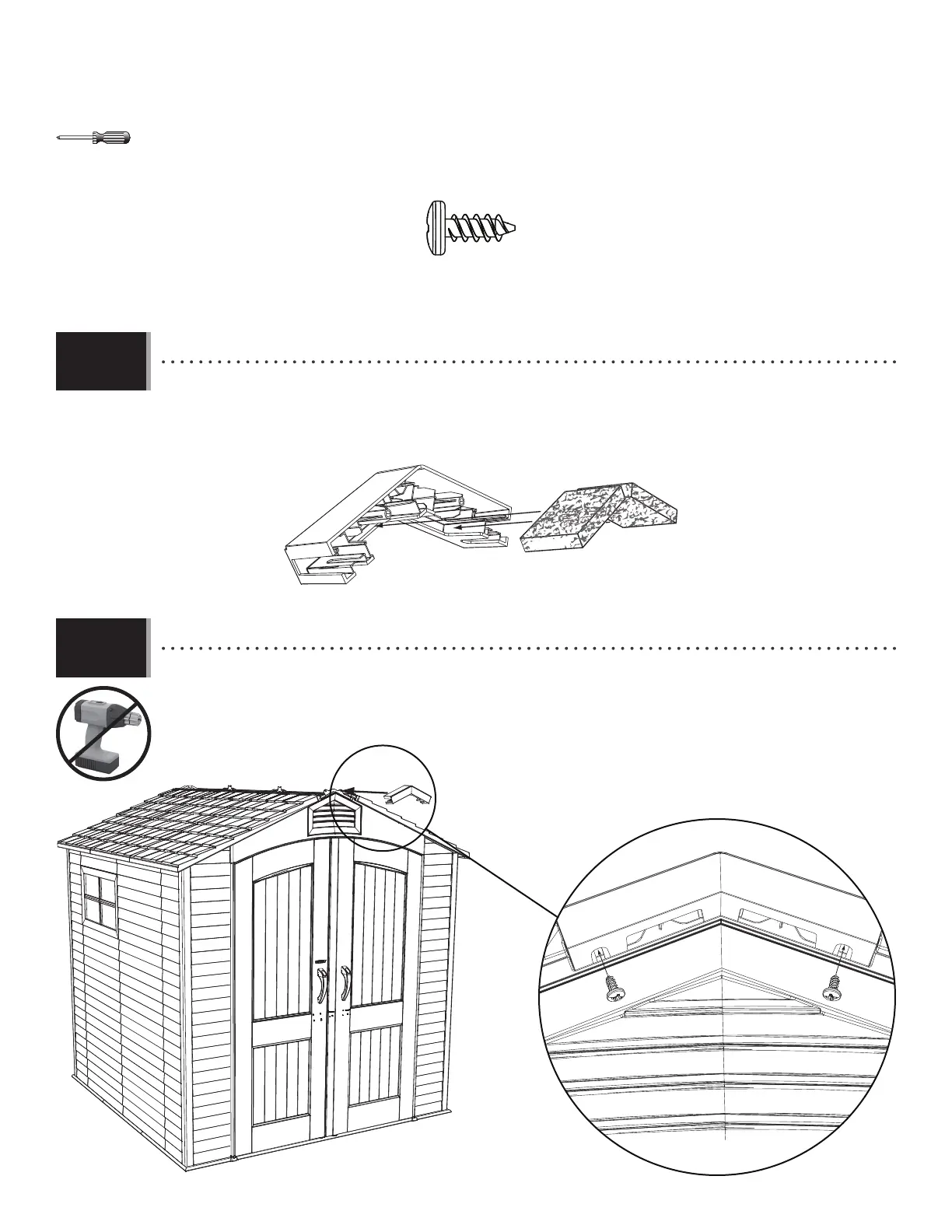 • Connect the End Cap to the outside of the shed using two (2) Screws (ADZ).