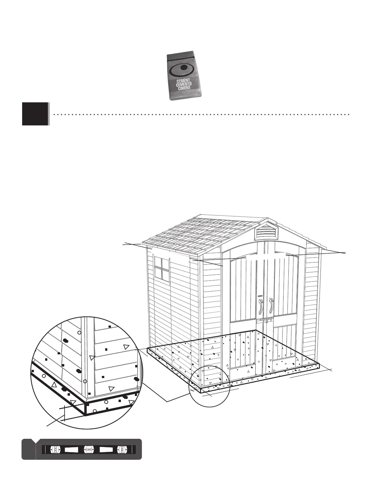 • The concrete should be approximately 4" (10,2 cm) thick. The actual dimensions of the shed, at its widest