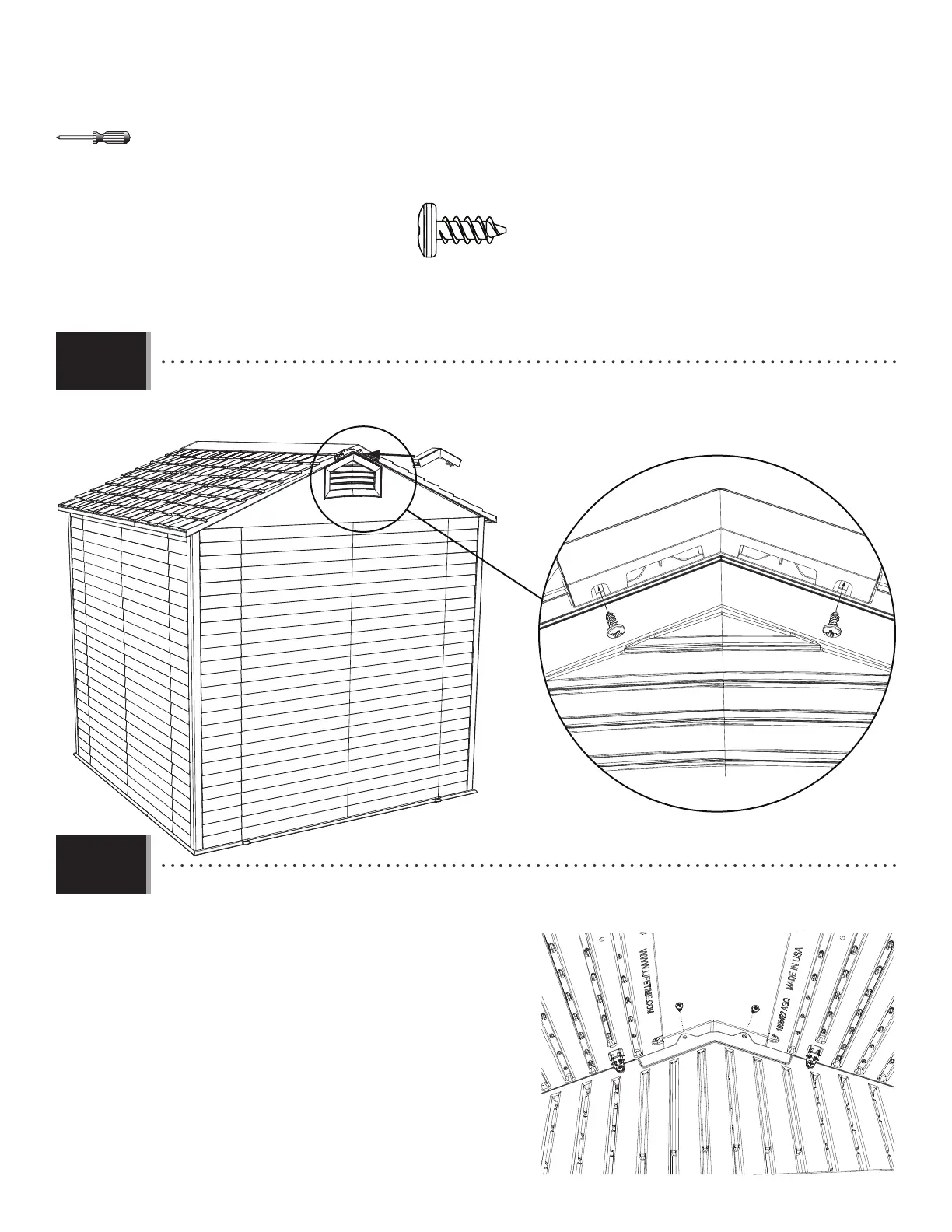 • Connect the End Cap to the outside of the shed using two (2) Screws (ADZ).