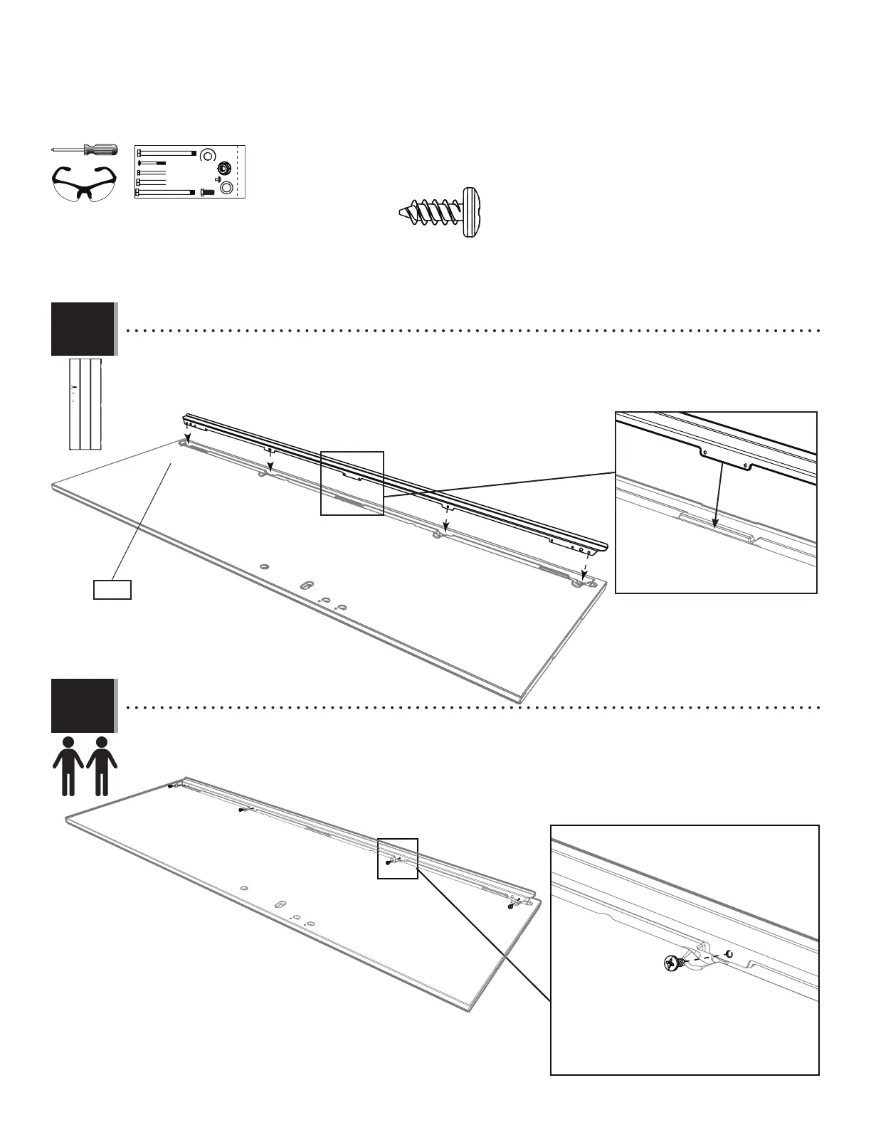 • While one adult holds the Channel tight against the Door, insert four (4) Screws (ADZ) to secure the Channel in place.