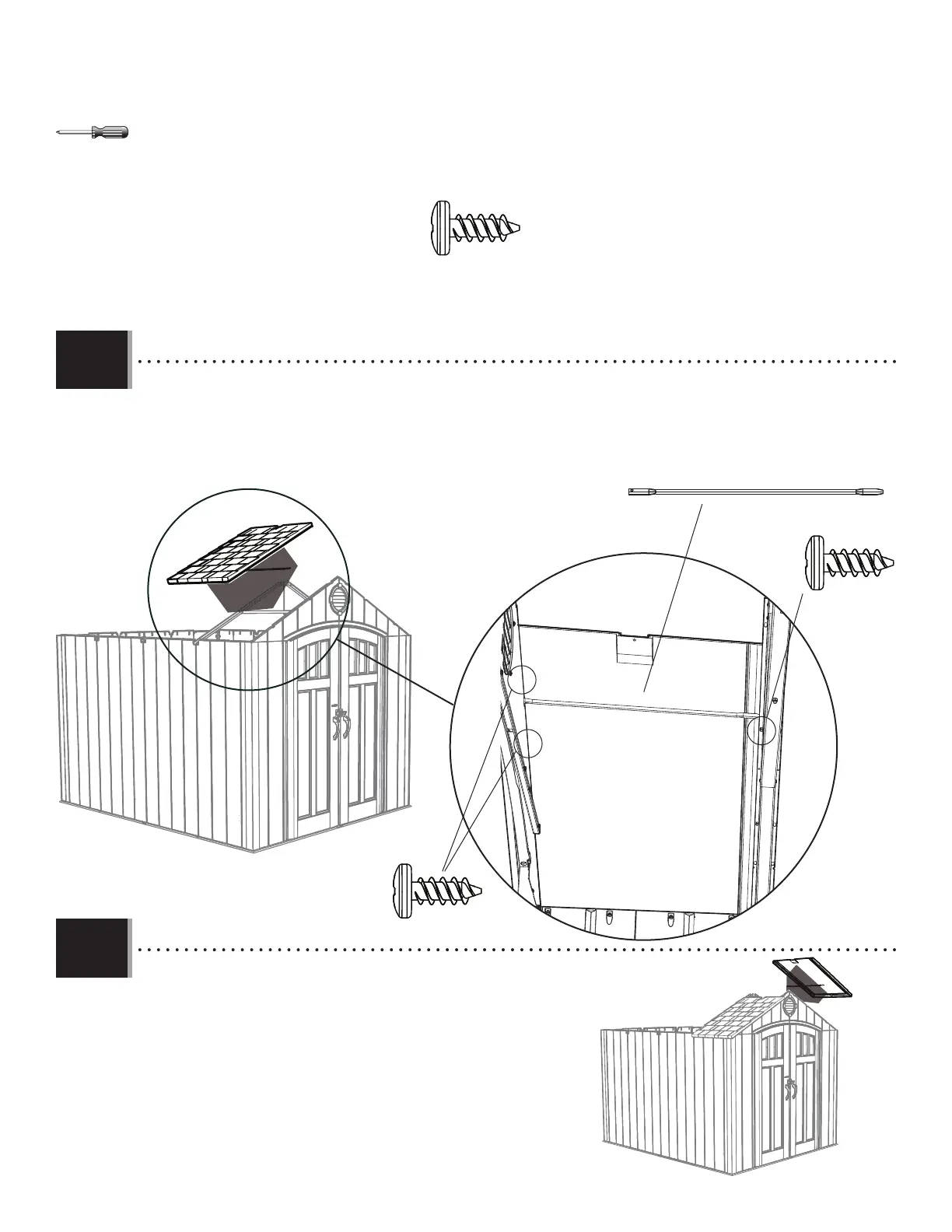 • Insert the Roof Support (AFL) into the notches in the Gable and between the Truss and the Roof Panel. Insert three