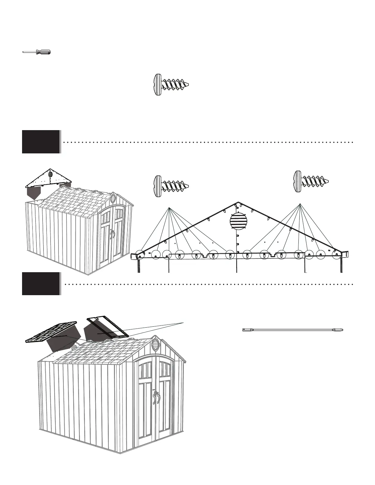 • Attach the Rear Gable to the Shed using fourteen (14) Screws (ADZ).