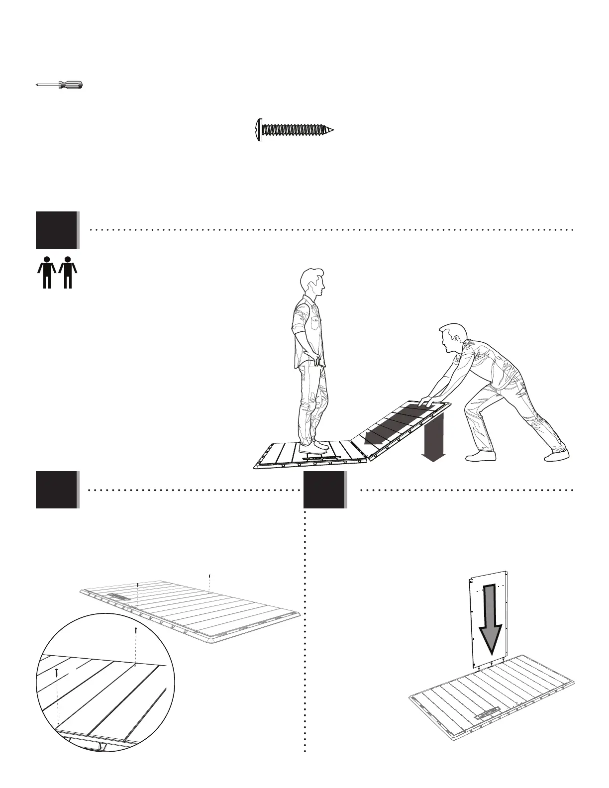 • Lay the Left Floor Panel (DRI) fl at. Slide the tabs in the Right Floor panel (DRH) between those in the Left Floor Panel, pushing against the