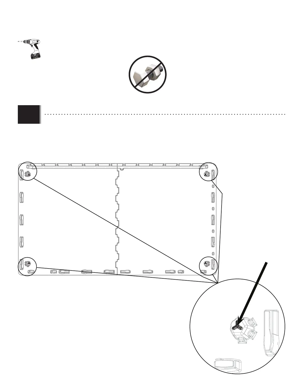 • If you wish, you can anchor your storage shed to a concrete or wood platform. Tilt the box on its back and drill through the