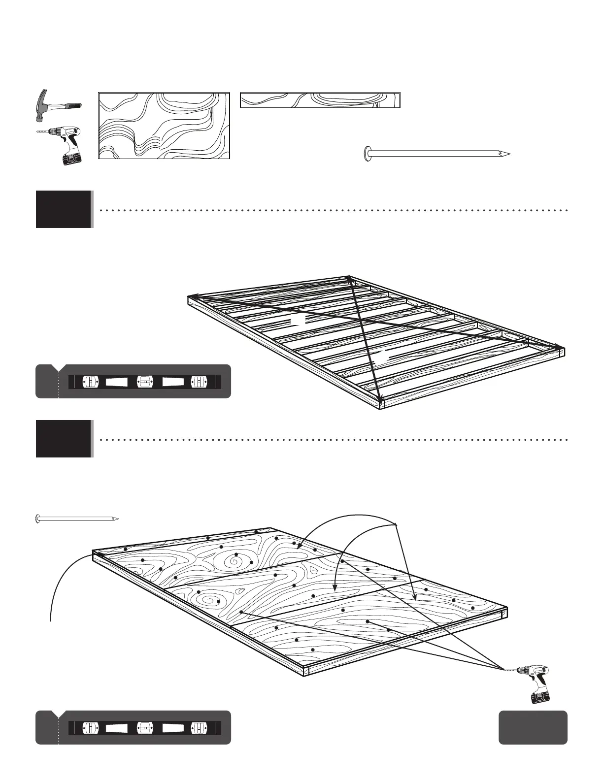 • Using nails, fasten the plywood to the frame. Then, drill 5/16" (8 mm) holes for drainage.