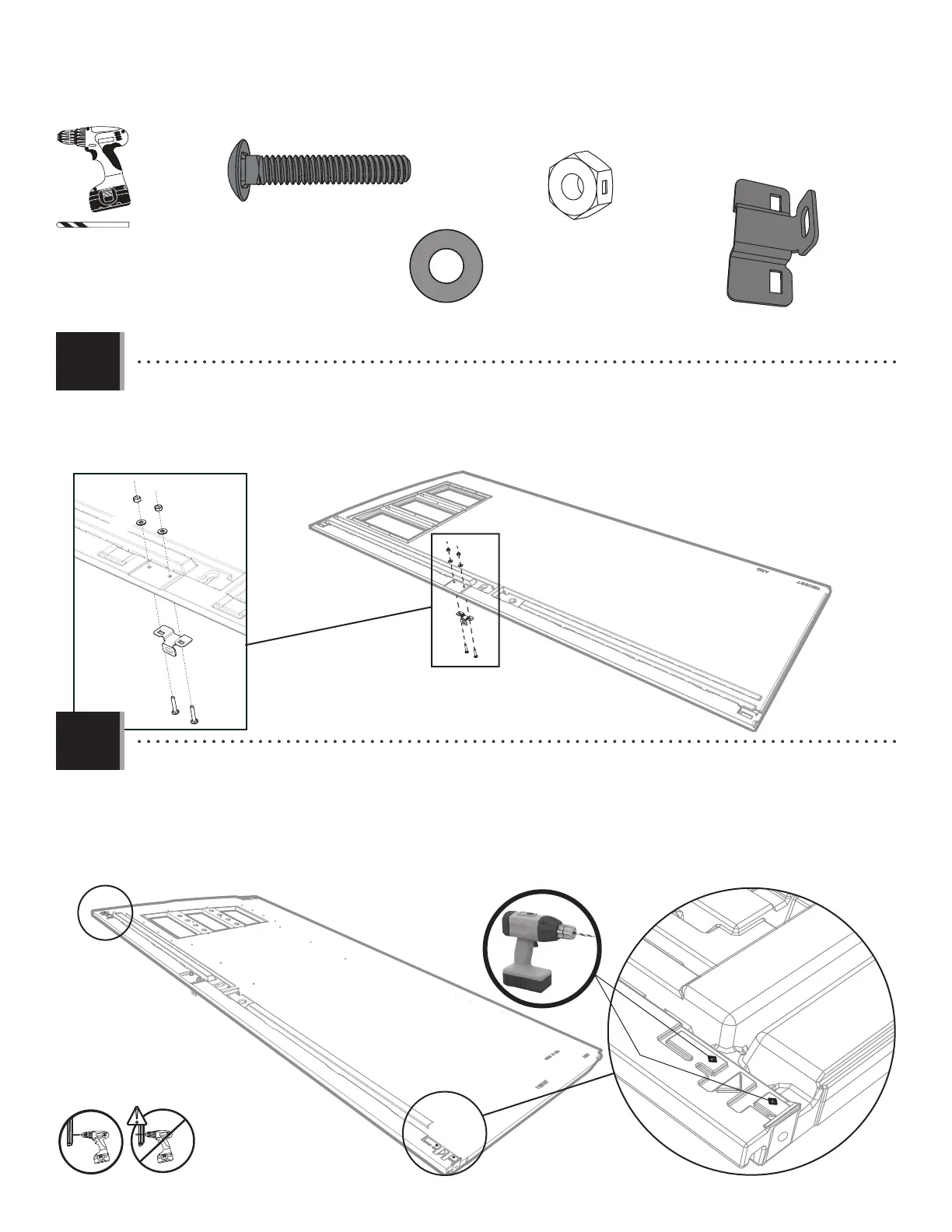 • Attach the Left Latch Bracket (EEP) to the Door using the hardware included. Tighten only by hand at this point.