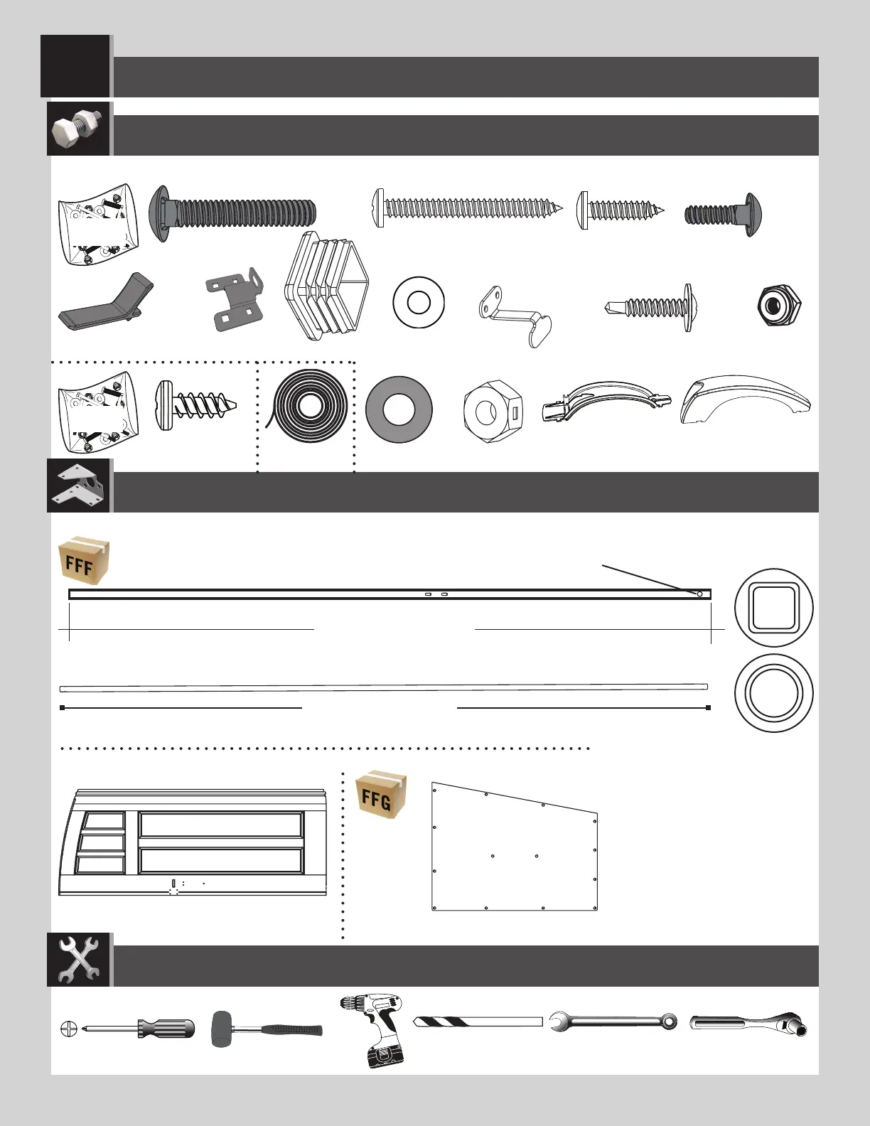 HARDWARE REQUIRED / QUINCAILLERIE REQUISE / HERRAJE REQUERIDO
