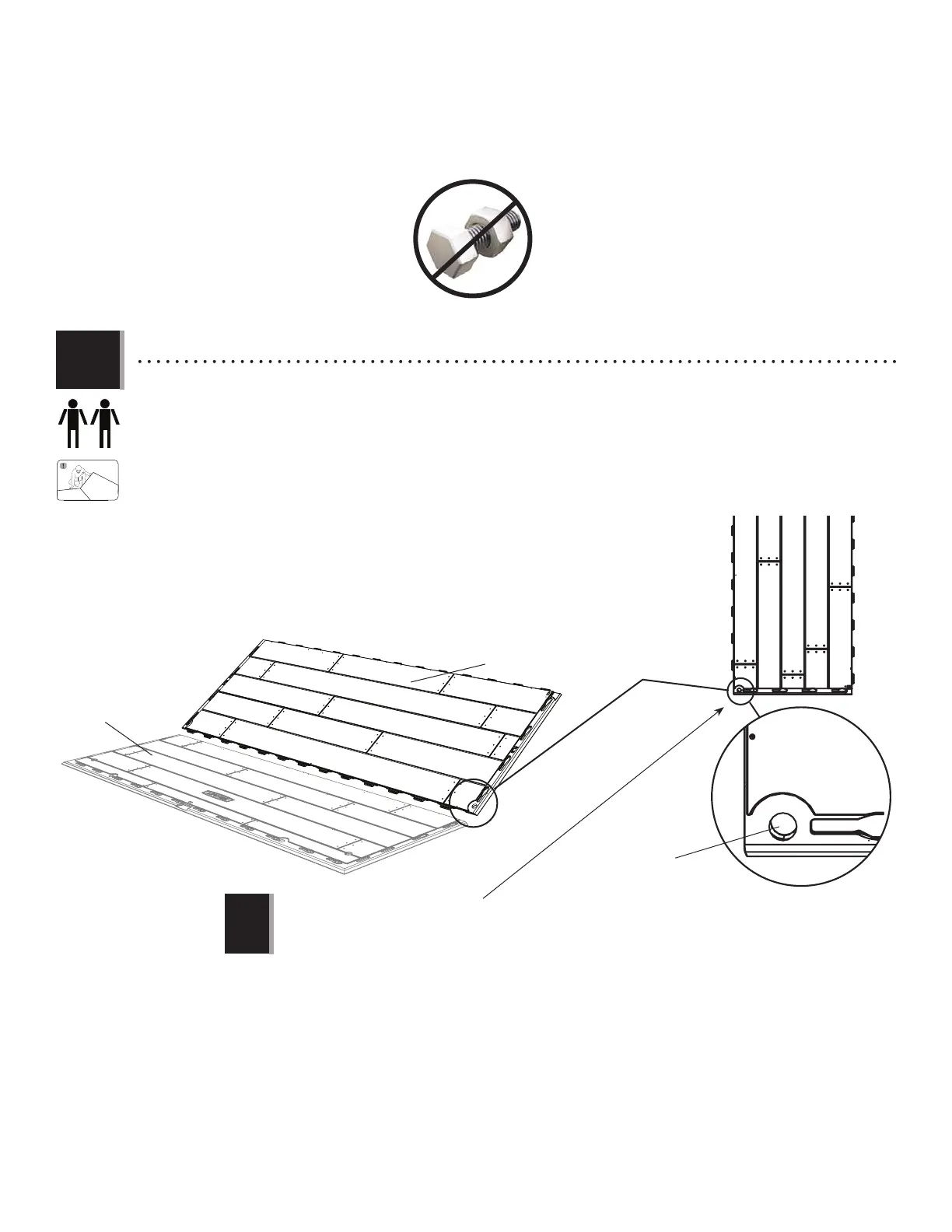 • Colocar un panel de piso interior (CUD) a un ángulo, y deslizar las lenguetas a lo largo del borde debajo el panel de