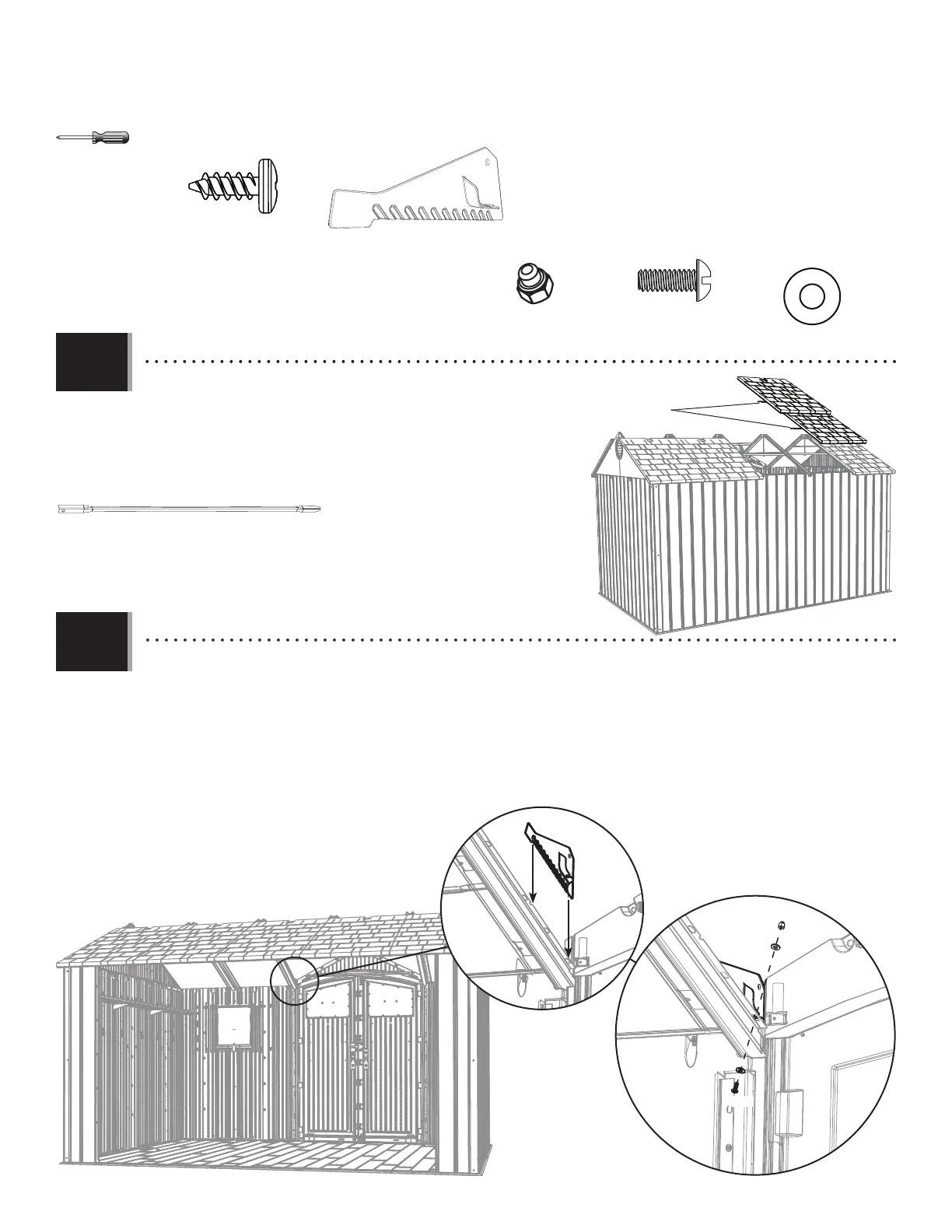 premier trous dans la ferme comme illustré. Attacher-la bien à la ferme à l’aide de la quincaillerie incluse. Ne serrer