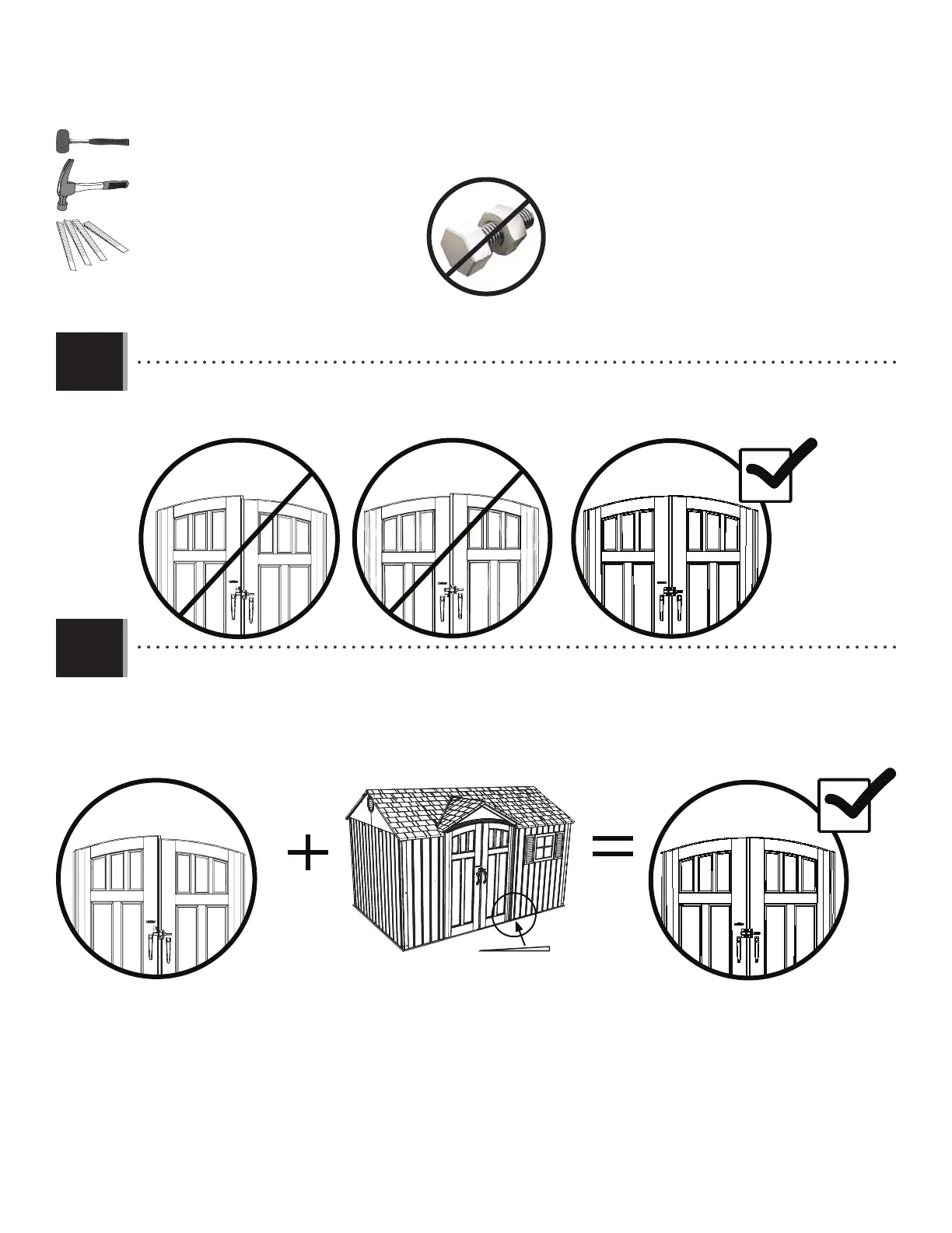 • If the Left Door is higher, insert a Shim (AIX) underneath the right, front and left, rear corners of the Shed until the