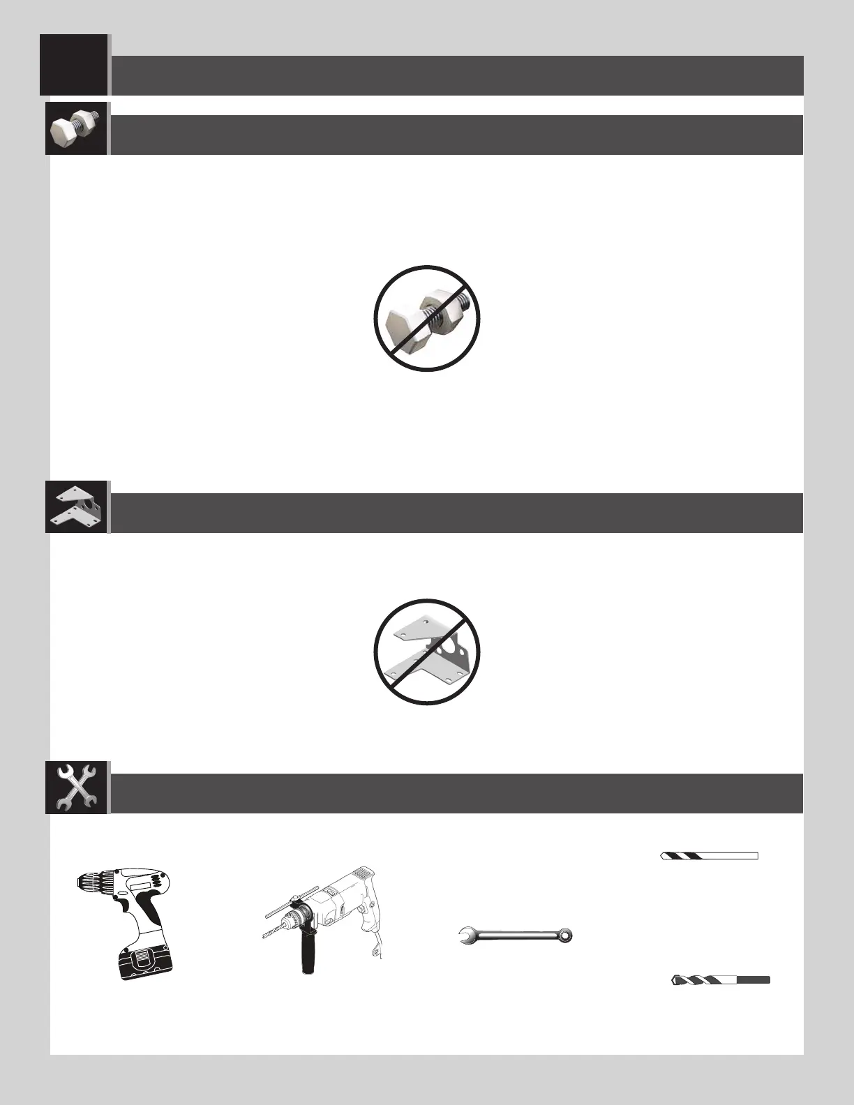 HARDWARE REQUIRED / QUINCAILLERIE REQUISE / HERRAJE REQUERIDO