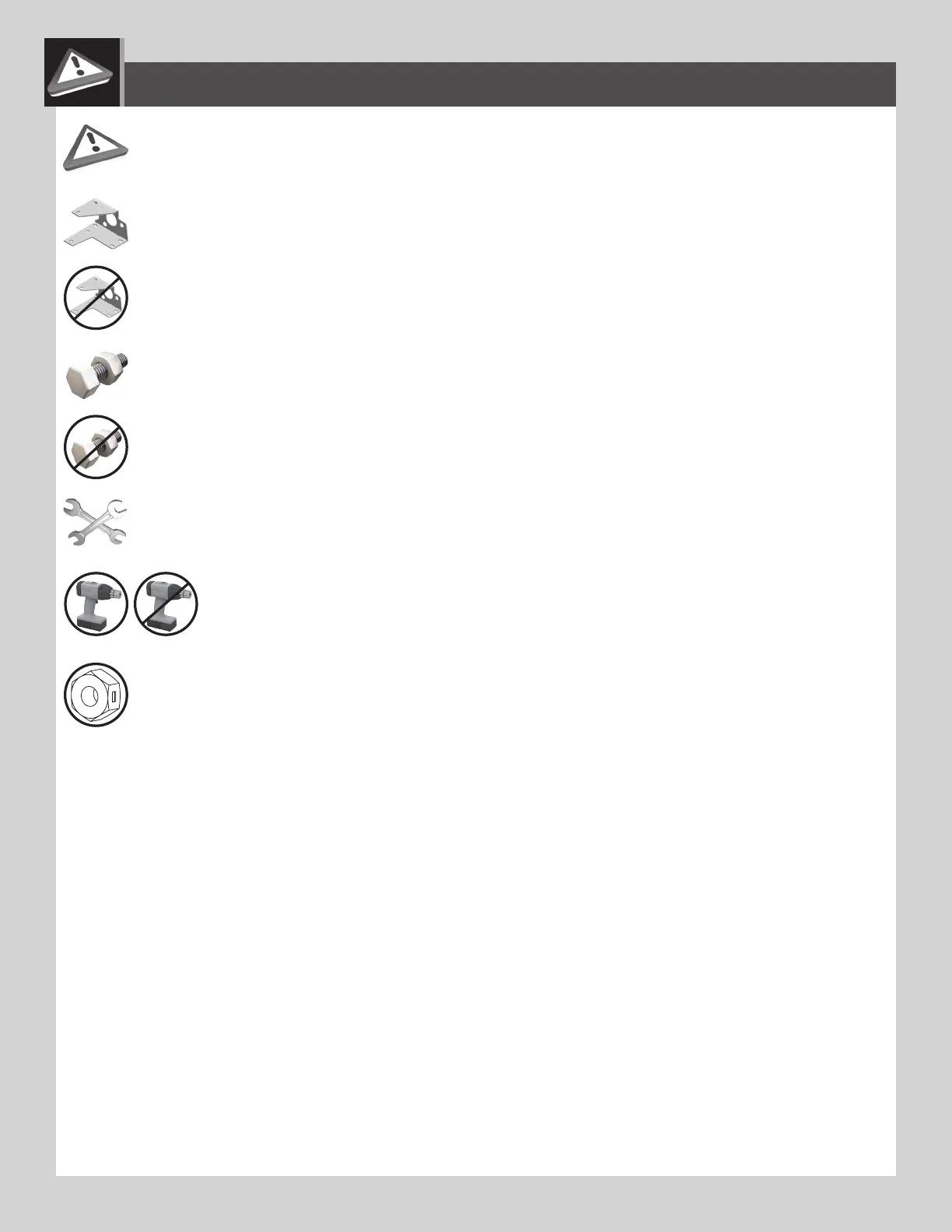 • Indicates to use/not to use an electric drill for a specifi c step.