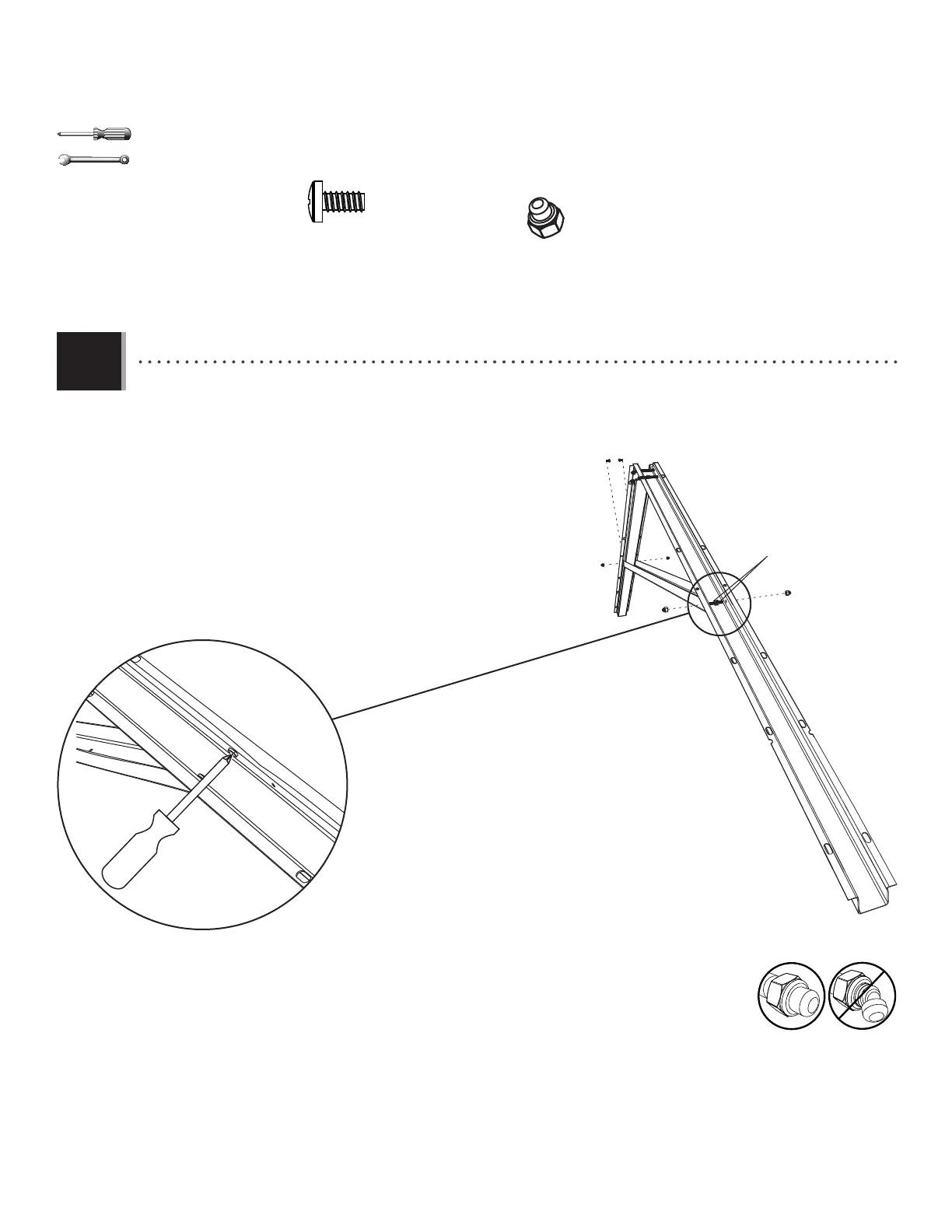 • Attatch the Large Truss Brace using the hardware included. Do not overtighten the Cap Nuts.