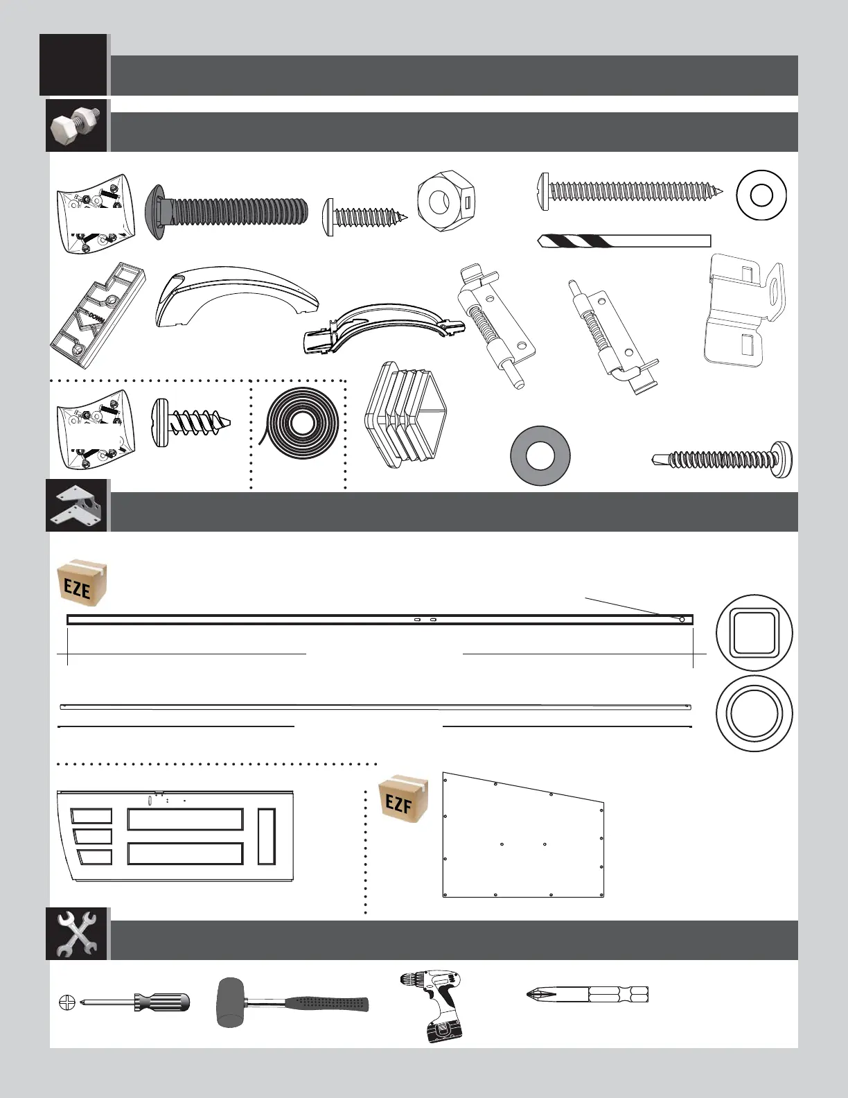 HARDWARE REQUIRED / QUINCAILLERIE REQUIS / HERRAJE REQUERIDO