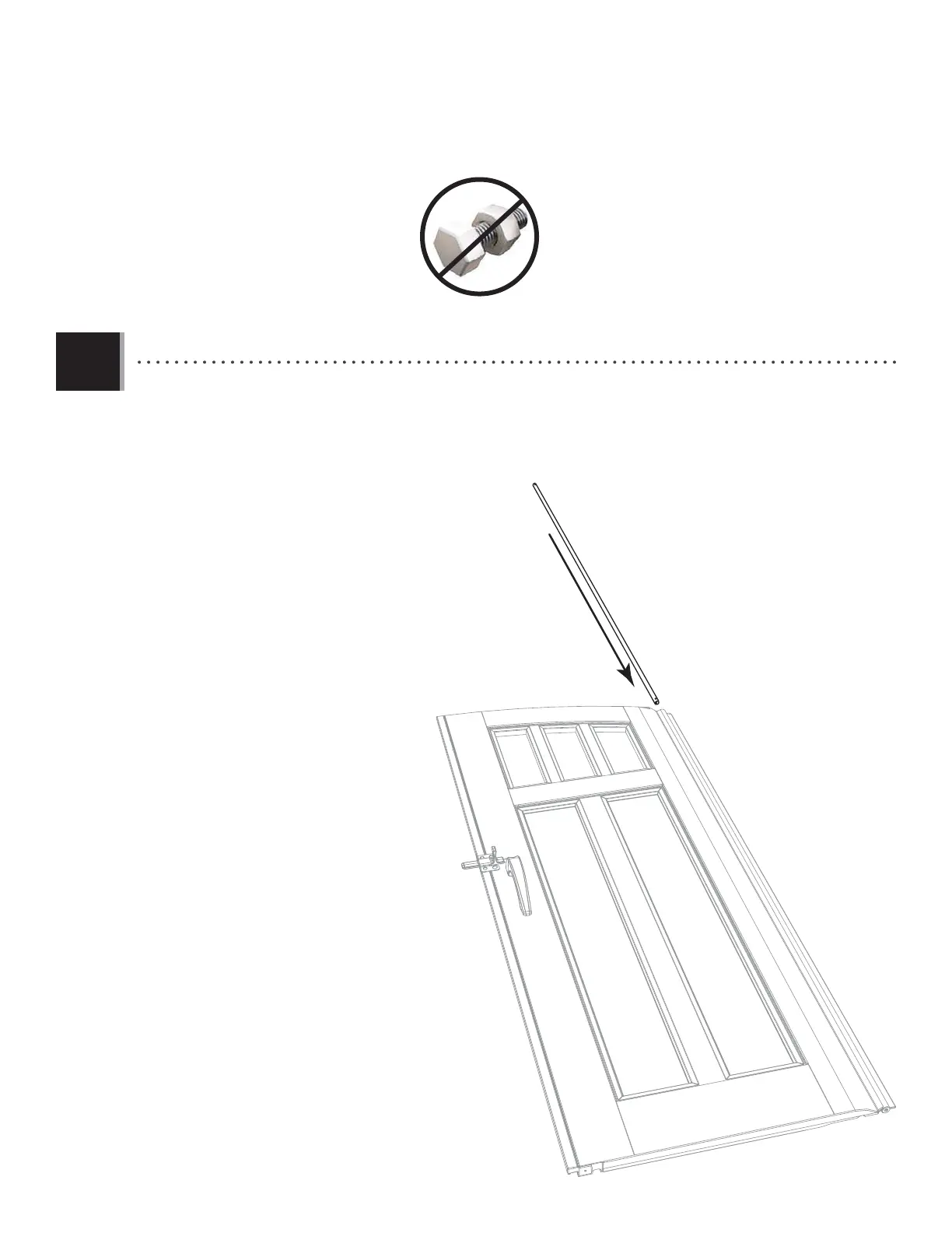 • Slide a Hinge Tube (CRD) into the hole in the Door until a few inches remain out of the bottom.