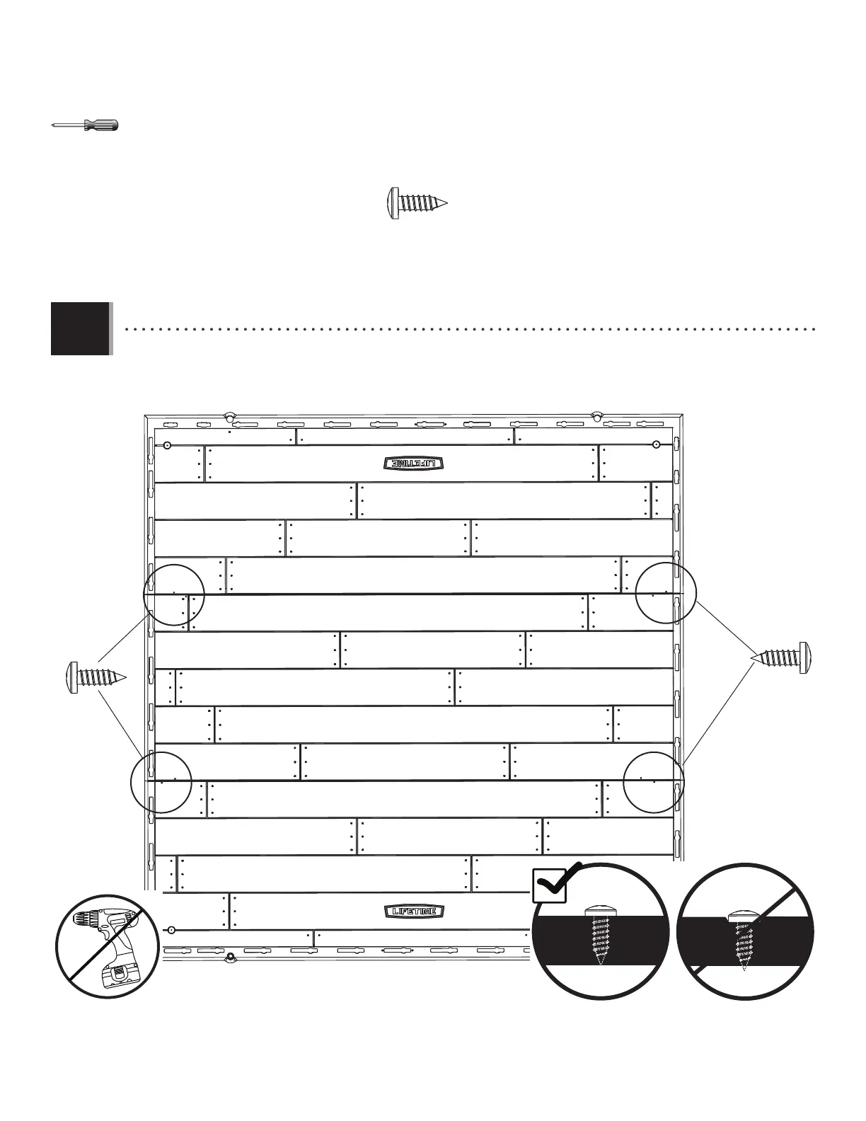 • Insert the Screws (BQC) through the divots in the Floor Panels and into the tabs of the adjacent Floor Panels. (The