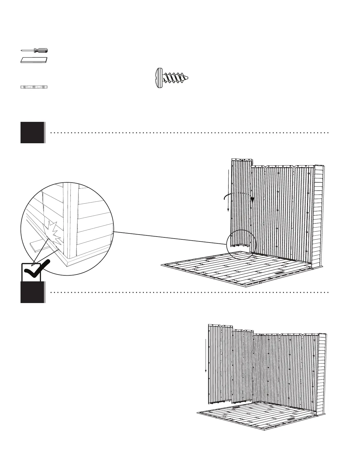 • Insert the tabs of two (2) Wall Panels (AHD) into the slots along the rear edge of the Floor. Slide the Panels toward