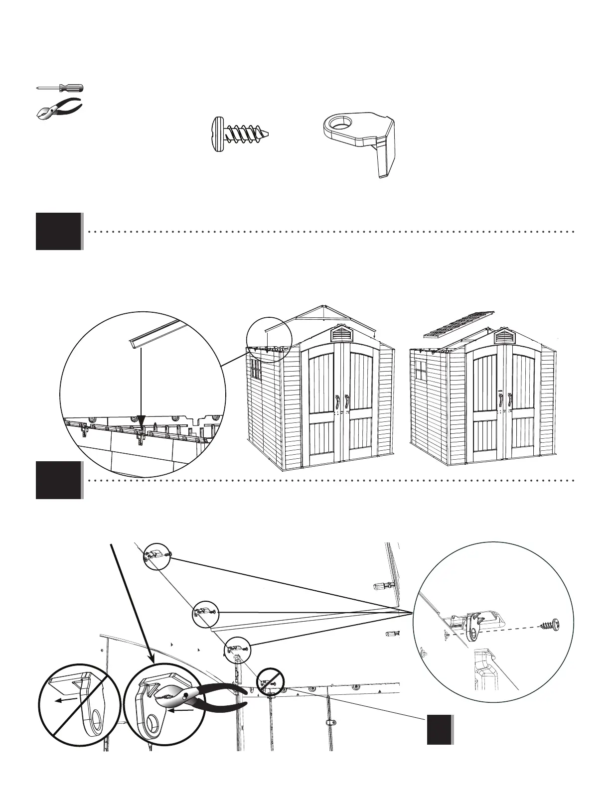 • Set a Truss Assembly into the notches on the fi rst two opposite Wall Panels. Set a Roof Panel onto the Gable, Wall