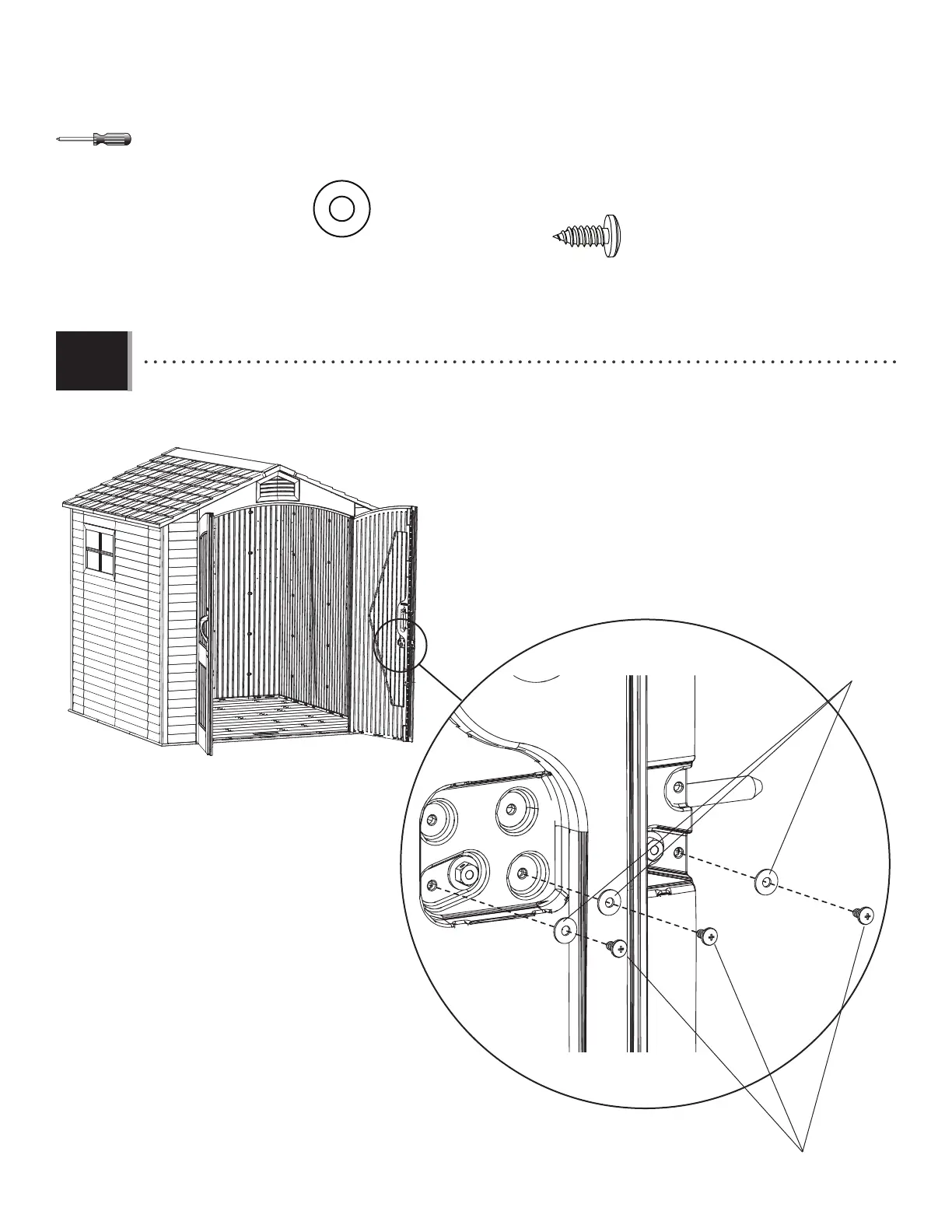 • Secure the Large Cover Plate to the Door as shown using the hardware provided.