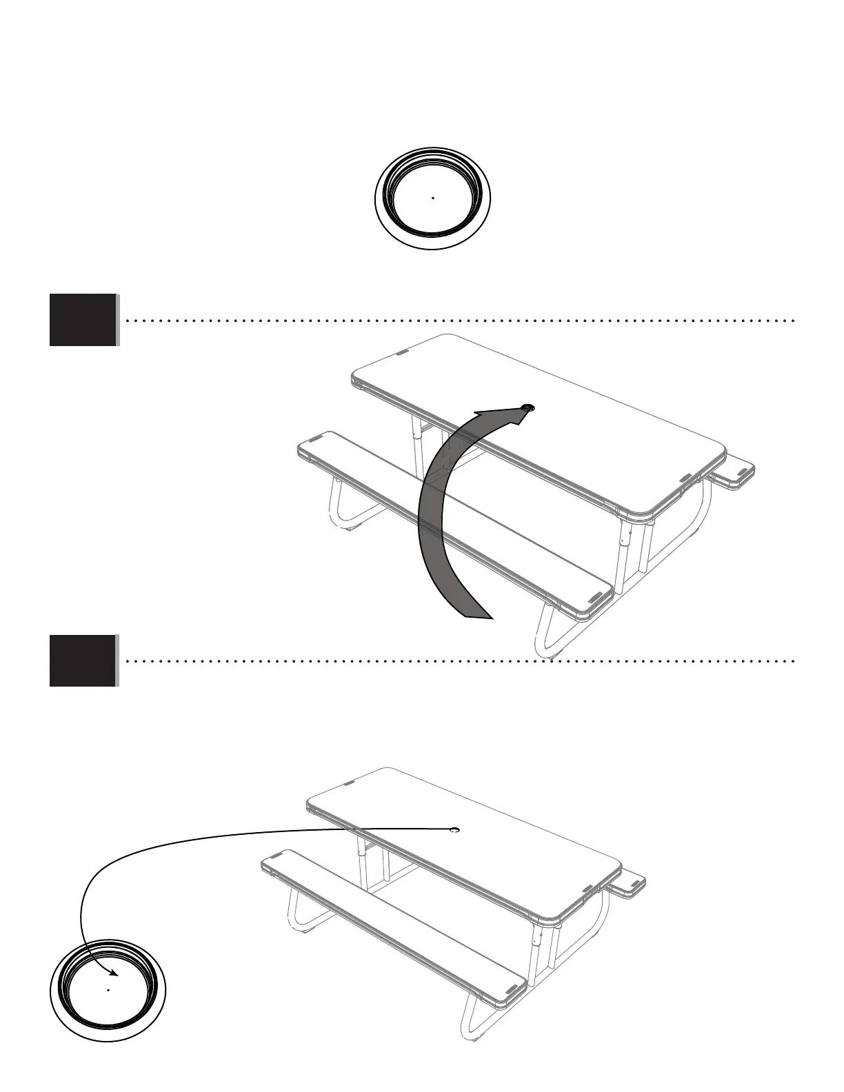 • If using an umbrella/parasol, remove the Plug (BBZ) from hole in center of Table Top. Then, insert the umbrella/