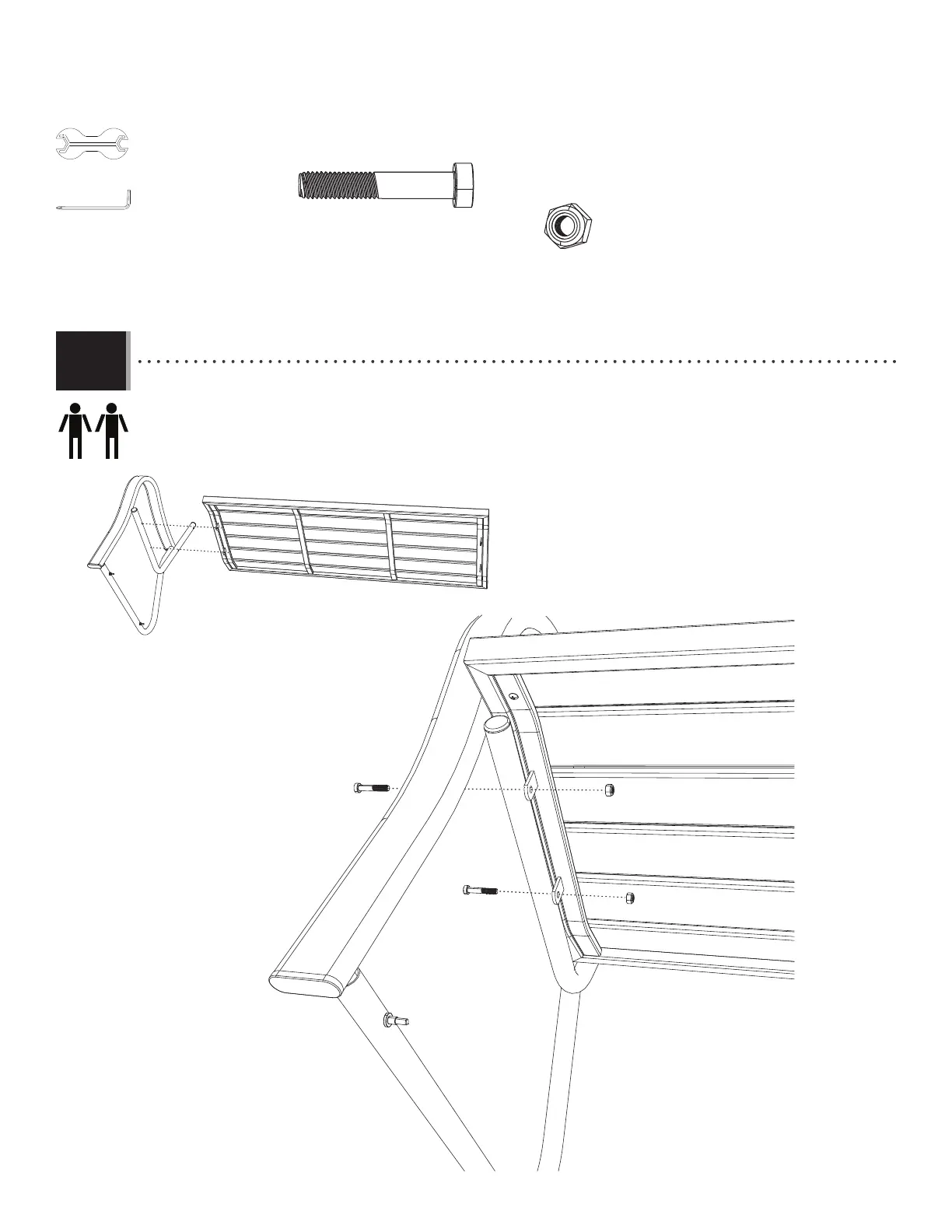 • Attach the Right Arm (BAW) to the Seat (BTA) using the hardware provided.