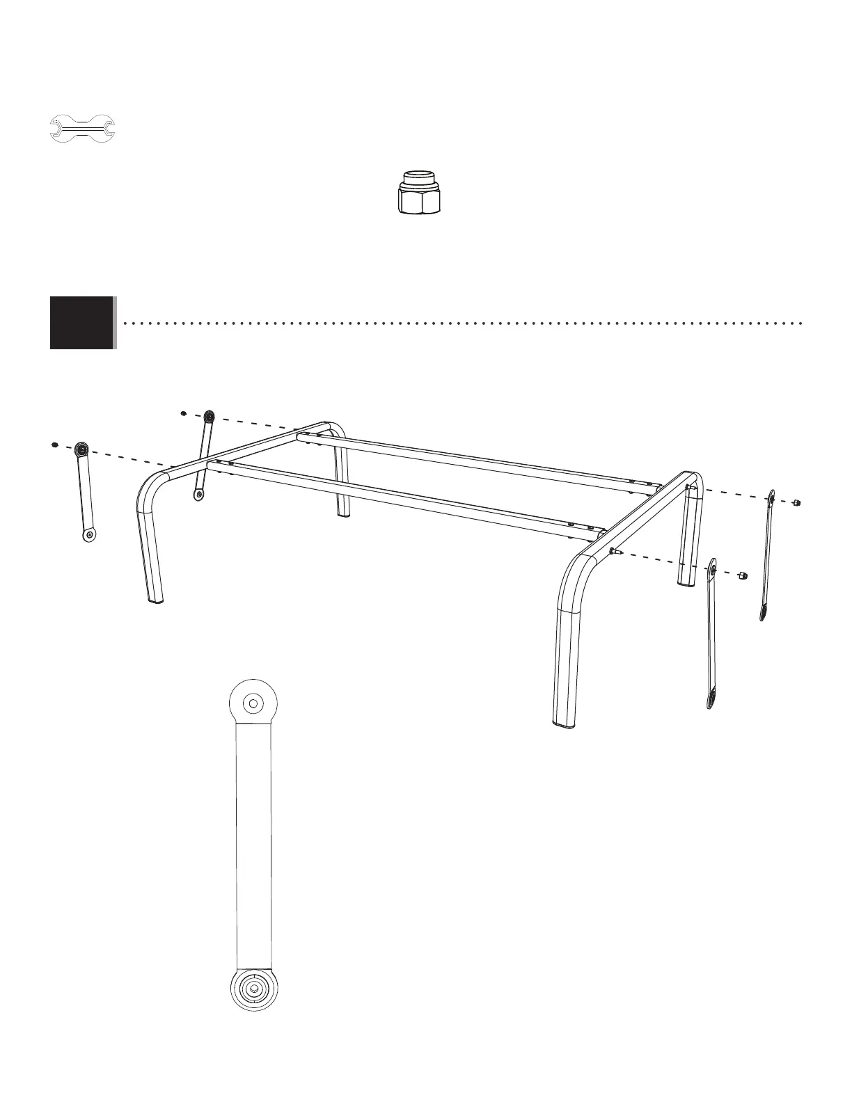 • Attach two Bearing Arms (BAV) to each Leg. Do not overtighten the Cap Nuts (AON)