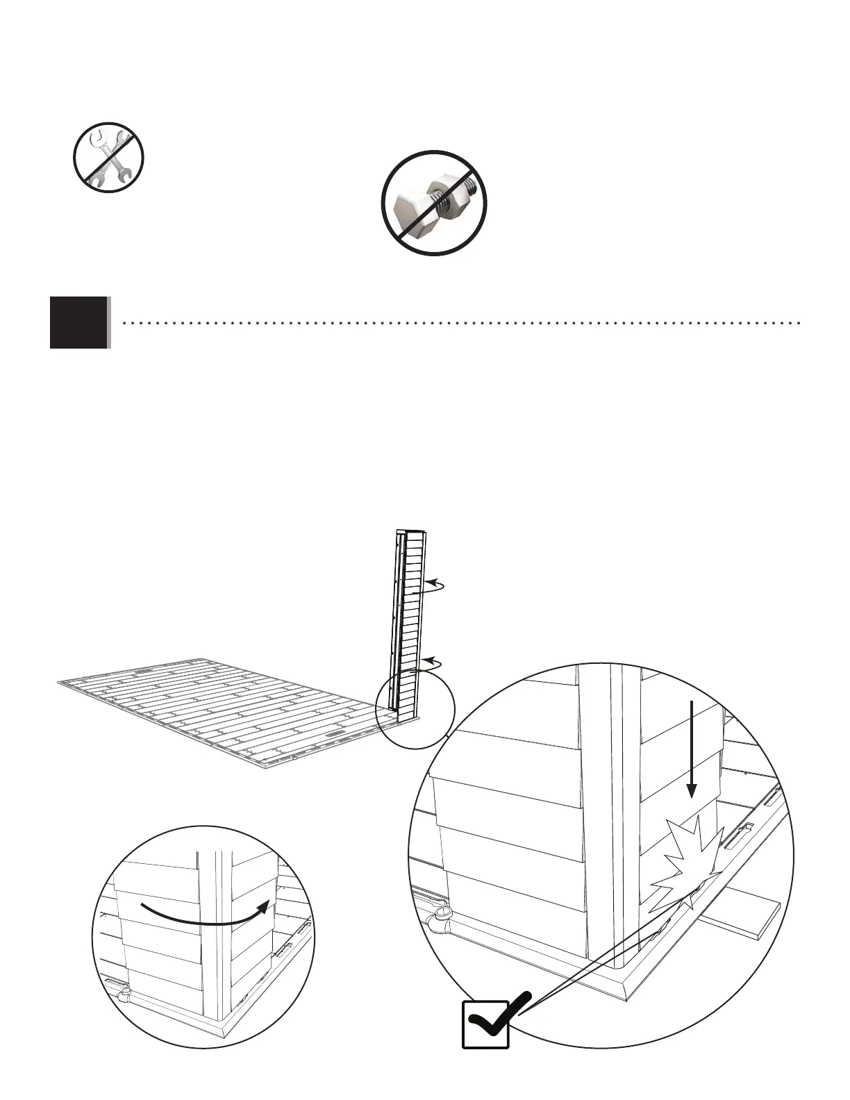 fl oor panel directly under the tab being inserted. You should hear a “click” when the tab pops into place. Repeat this