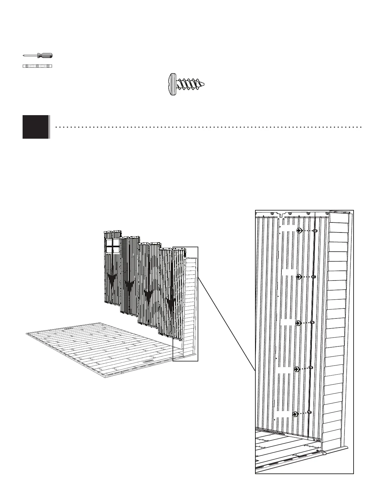 the panels toward the corner panel. Secure the panels to one another using fi ve (5) screws (ADZ) for each seam. The
