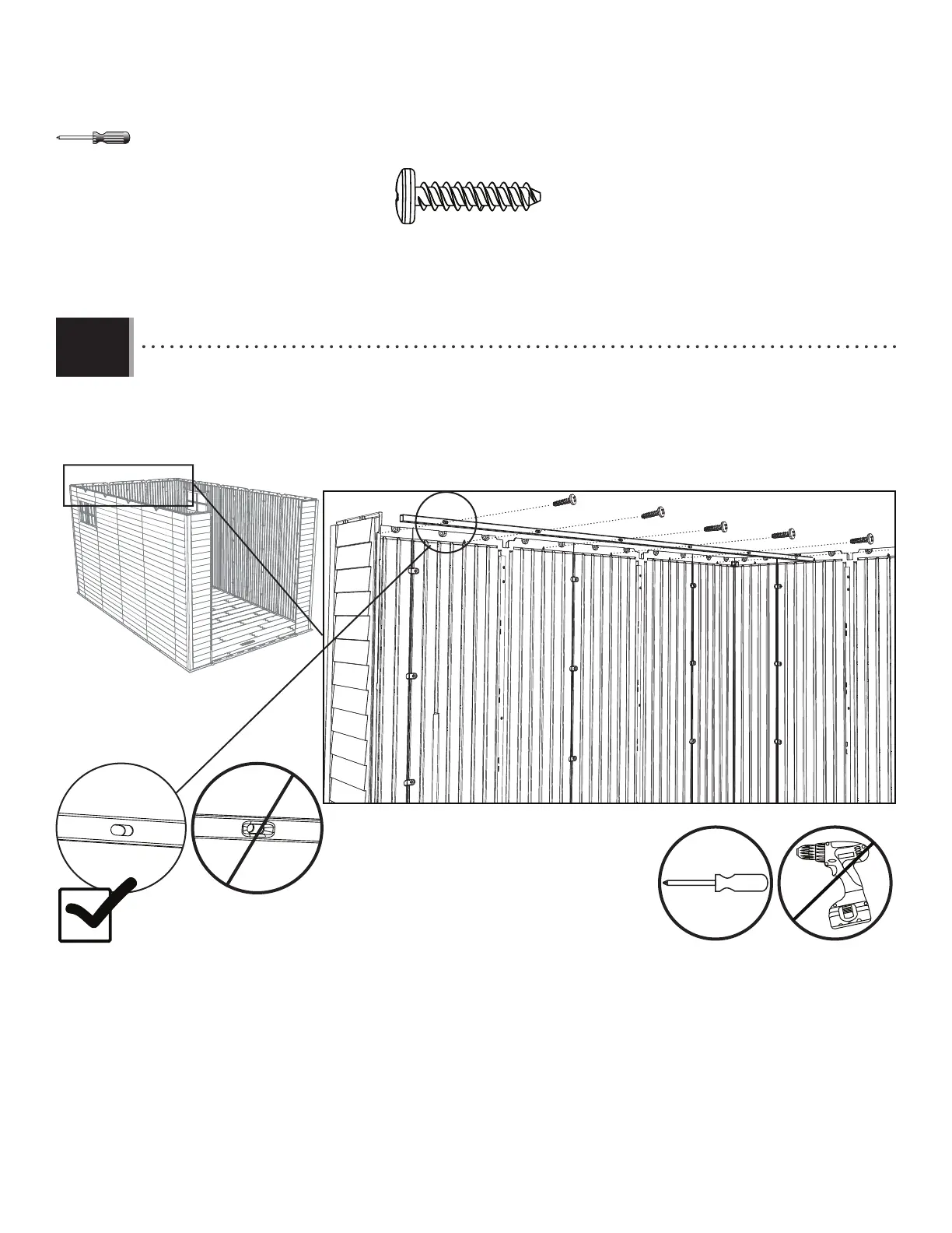 • Use a hand screwdriver to attach the wall support tube (BXX) to the top of the rear wall panels using six (6) screws (ADV).