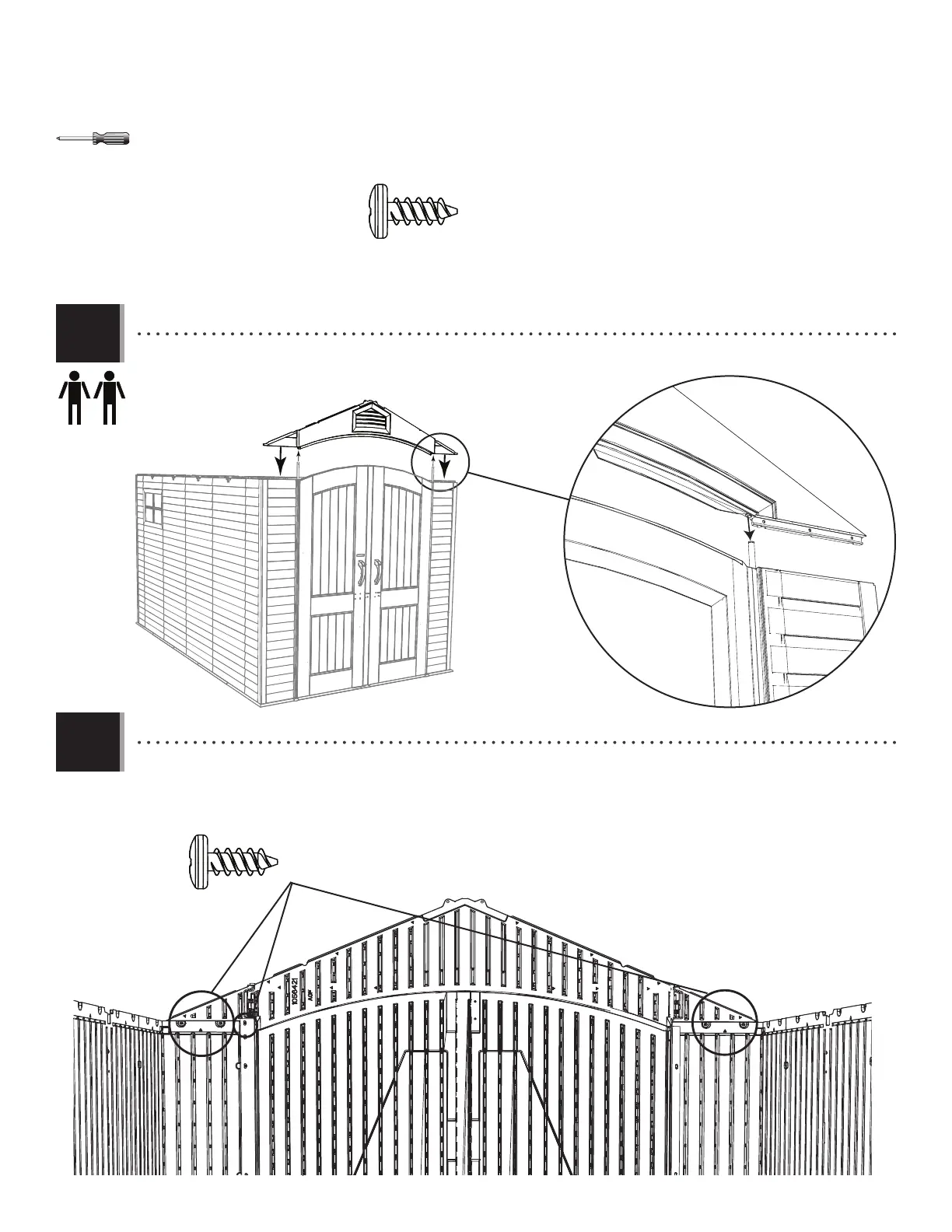 • Secure the entry gable to the shed using fi ve (5) screws (ADZ).