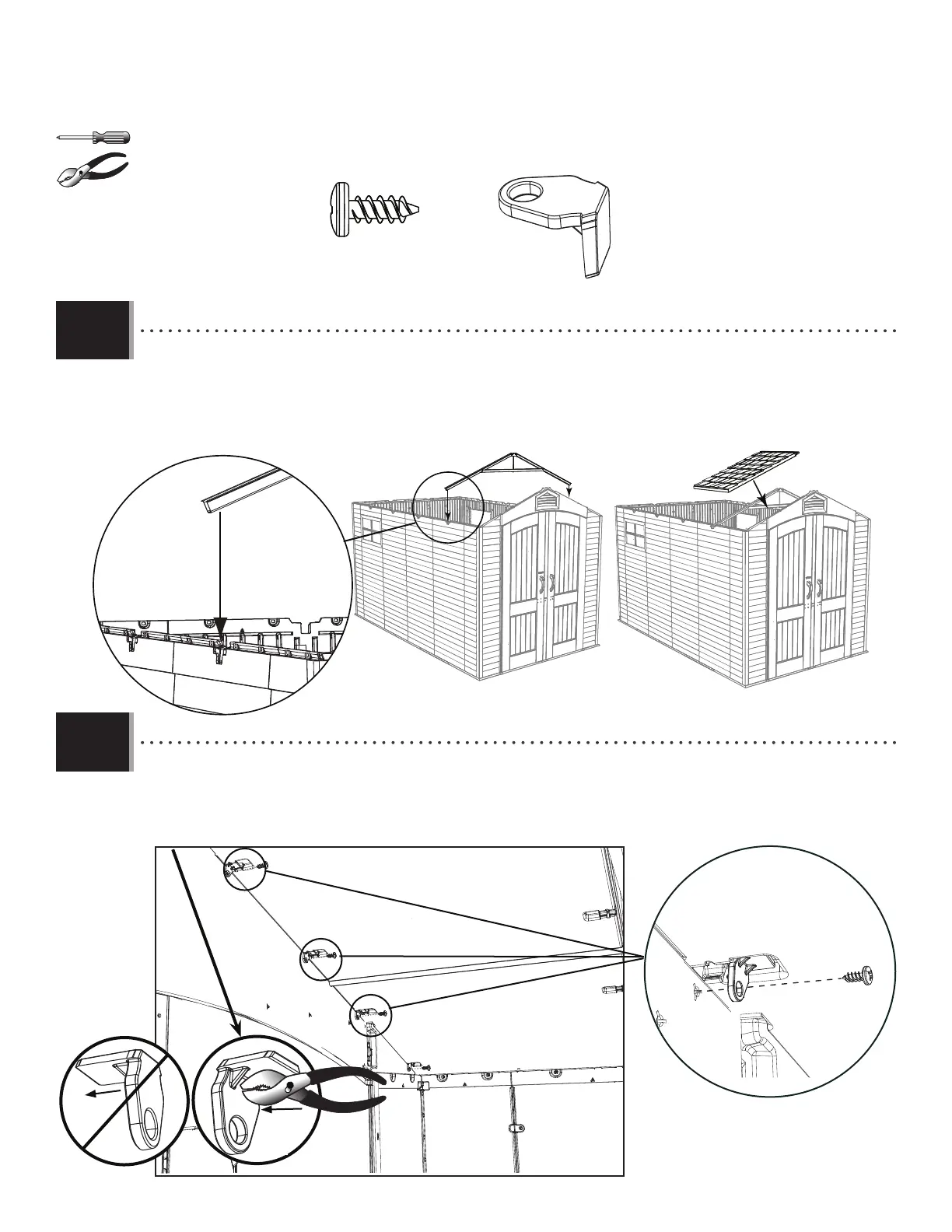 • Set a truss assembly into the notches on the fi rst two opposite wall panels. Set a roof panel onto the gable, wall