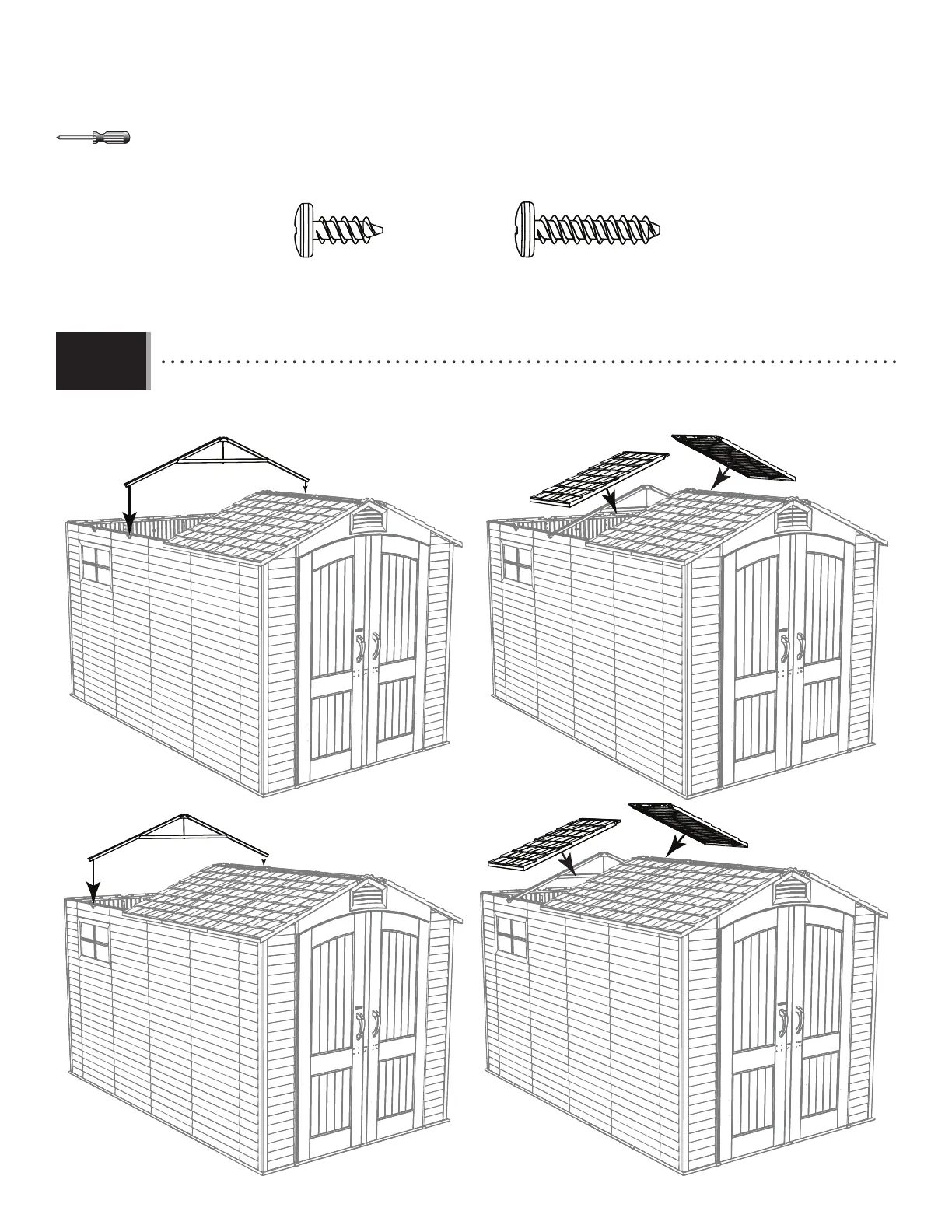 • Répéter les étapes 10.9 – 10.11 pour les deux fermes suivantes et les quatre panneaux de toit suivants.