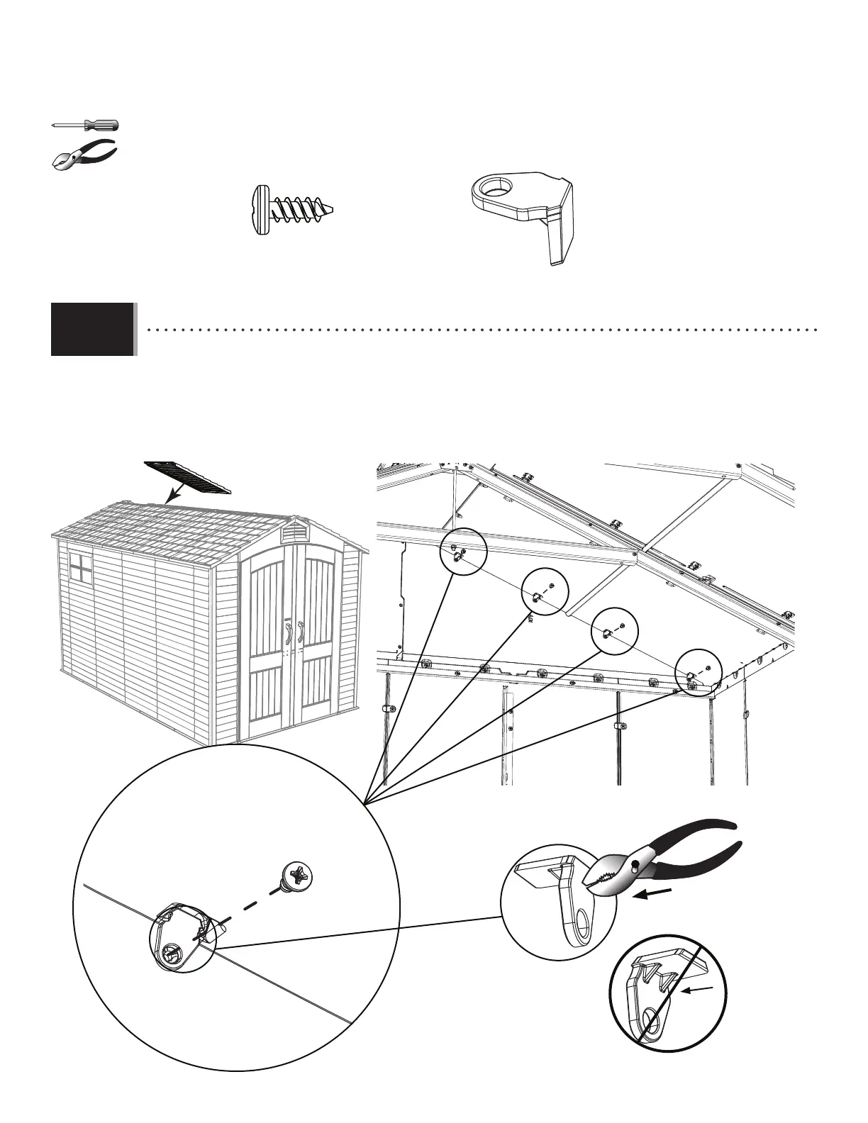 • Mettre le panneau de toit sur le pignon, panneau mural, et la ferme. Orienter les clips (BYT) comme illustré
