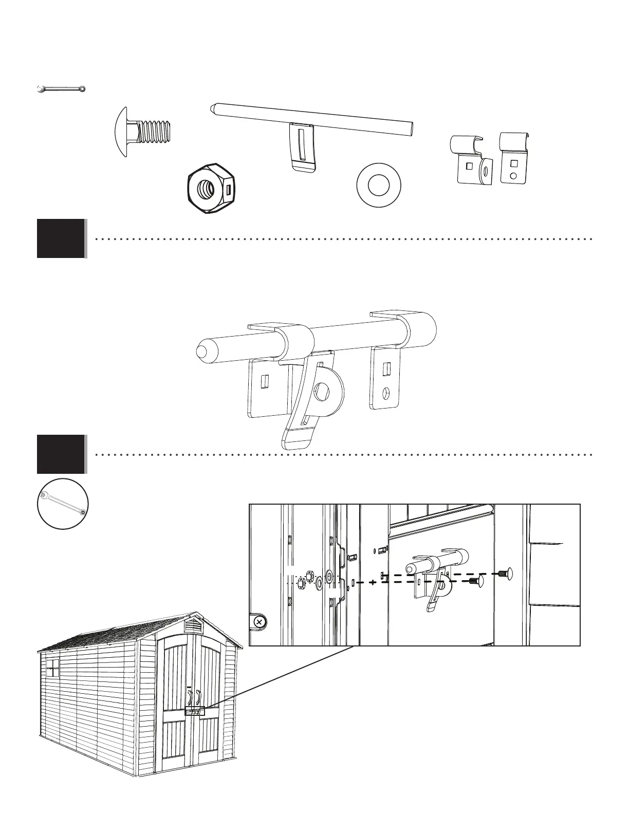 • Attach the latch assembly to the right door using the hardware provided. Tighten these nuts securely.