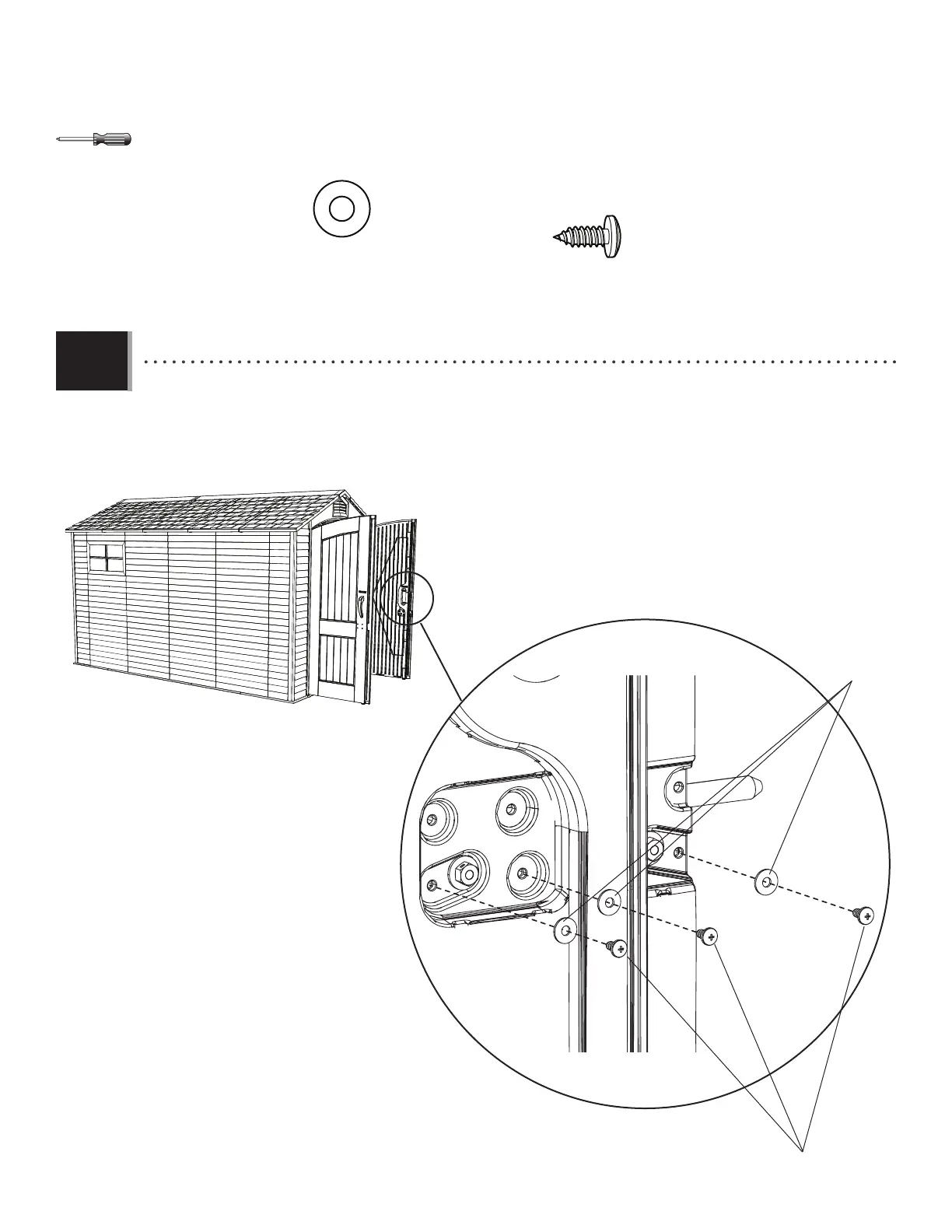 • Secure the large cover plate to the door as shown using the hardware provided.