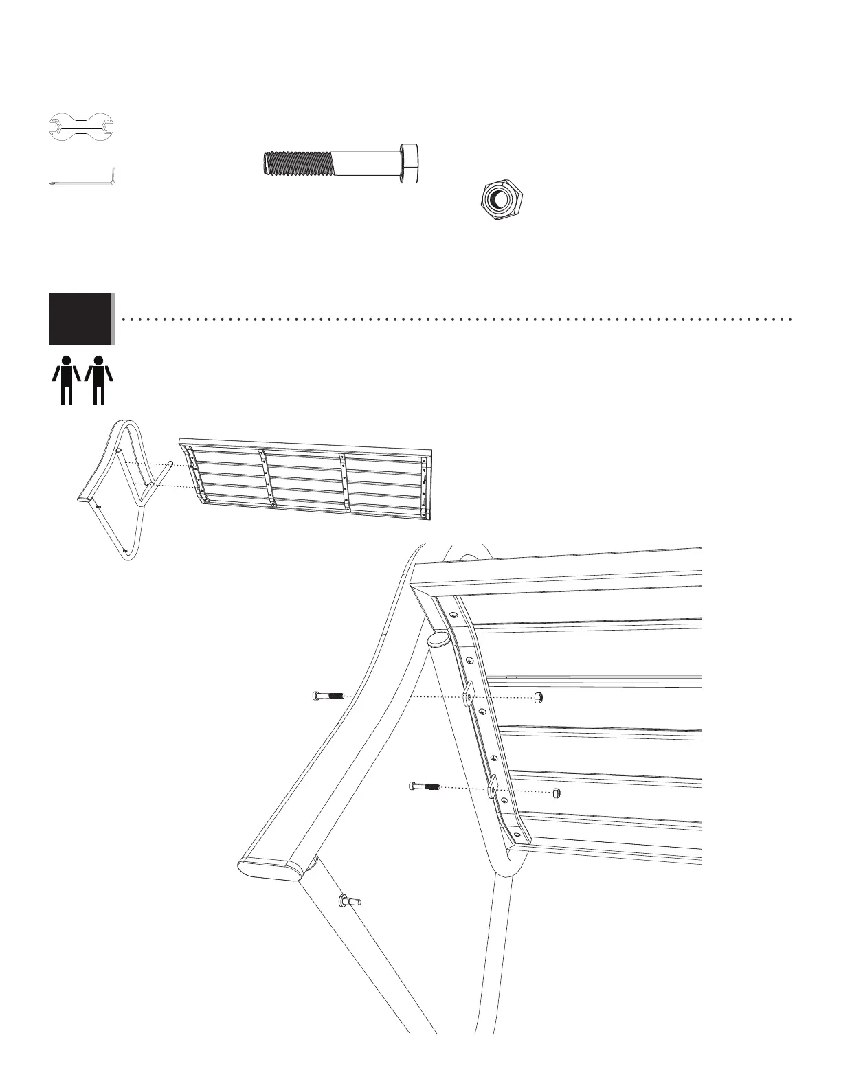 • Attach the Right Arm (BAW) to the Seat (BTA) using the hardware provided.