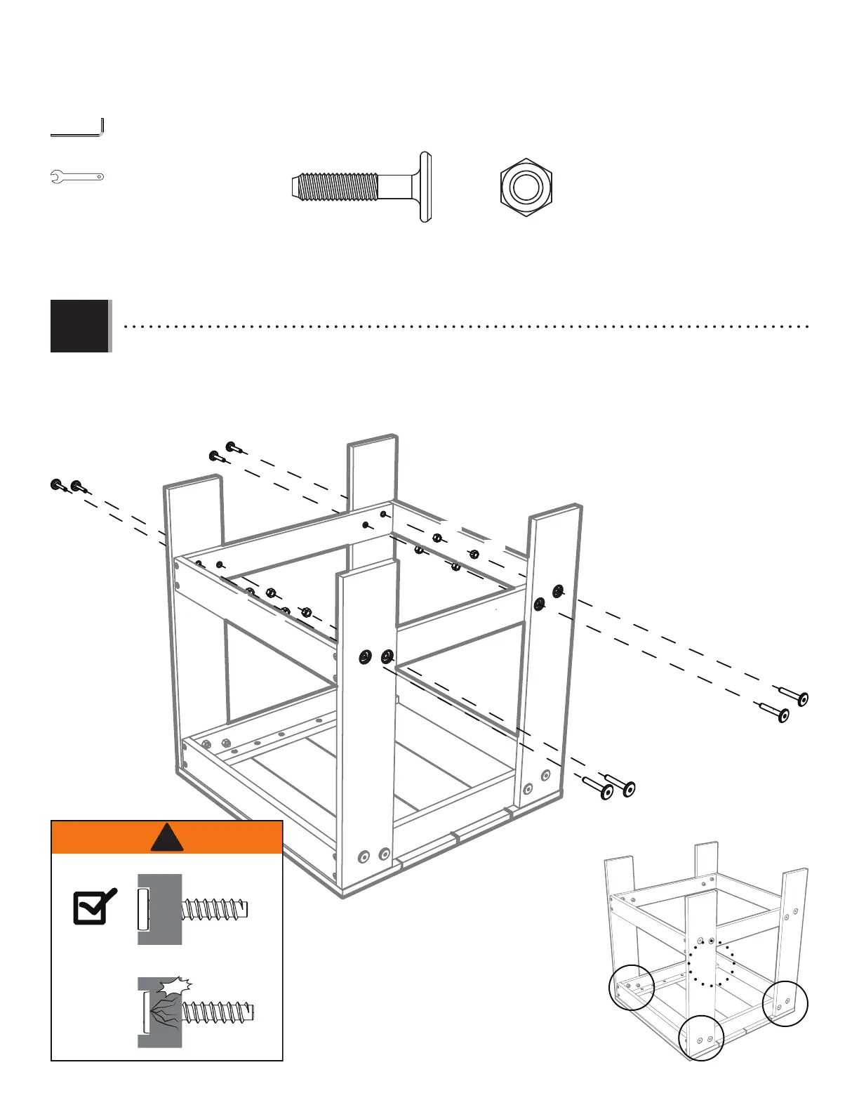 • Secure the Brace to the Legs using the hardware provided. Securely tighten all hardware.