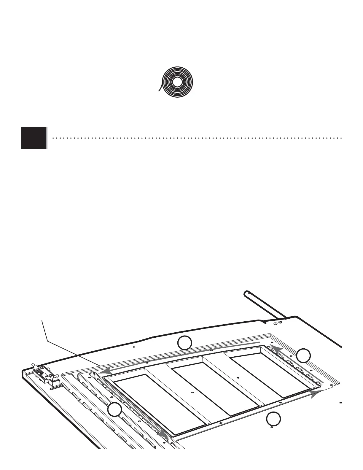 ranura. No presionar la cinta dentro de la ranura. No estirar la línea. Seguir hacia abajo (1) y, al acercar cada ángulo, quitar