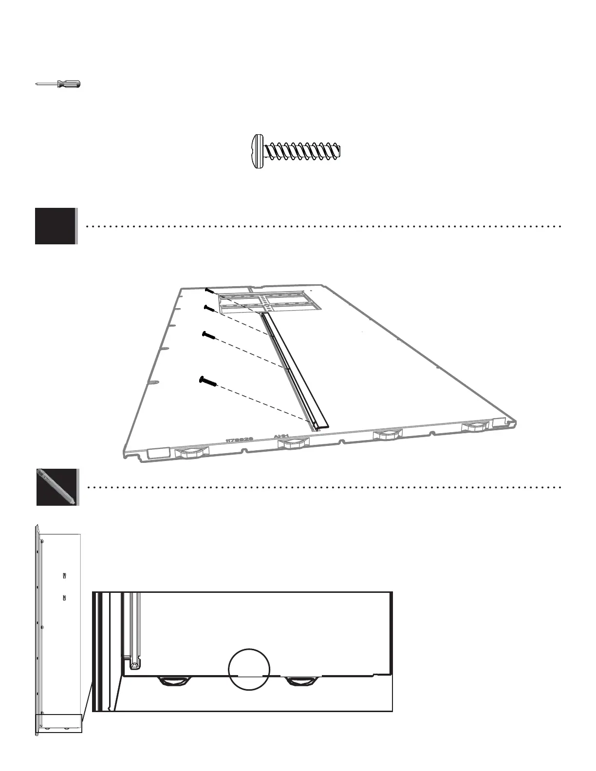 • Secure the Channel to the Panel using four (4) Screws (ADV). Note the angle of the Screws.