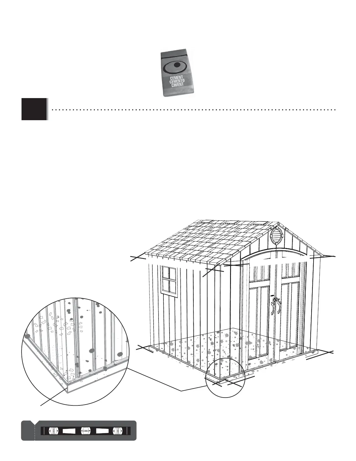 • Le béton doit être d’environ 4 po (10,2 cm) d’épaisseur. Les dimensions réelles de la remise, à sa plus grande dimension