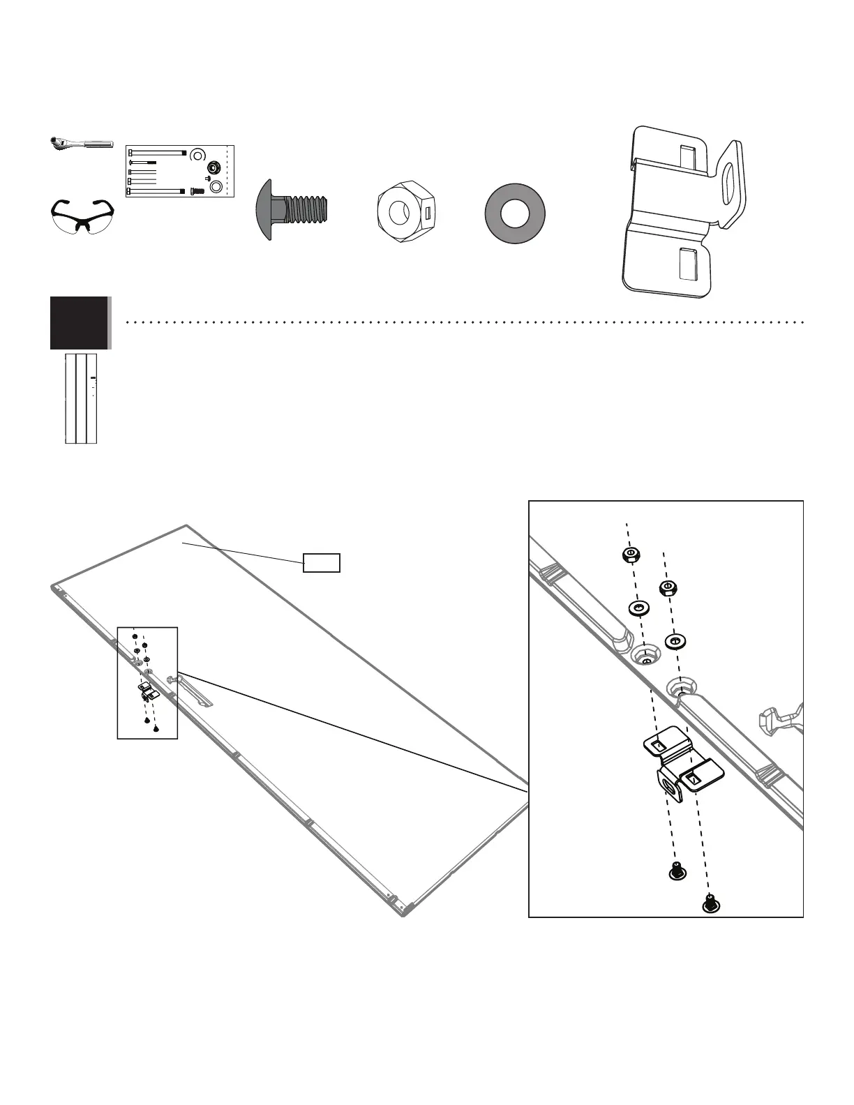 • Flip the Left Door (AGO) upside down, and attach the locking hardware to the Door as shown. Hand tighten for now.
