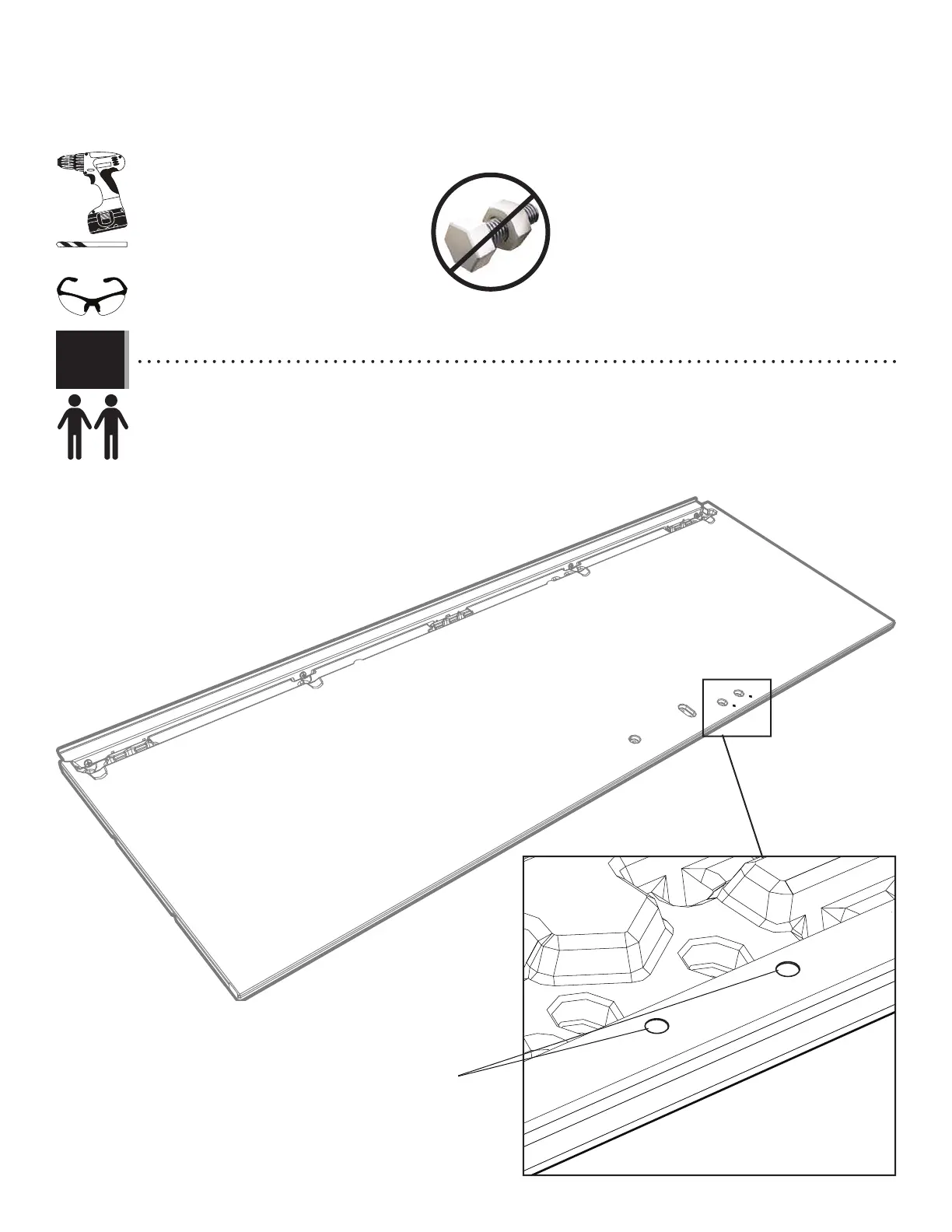 • Now, drill completely through the Door and Square Tube using the 1/4" (6,4 mm) bit. Use the holes in the Square Tube as