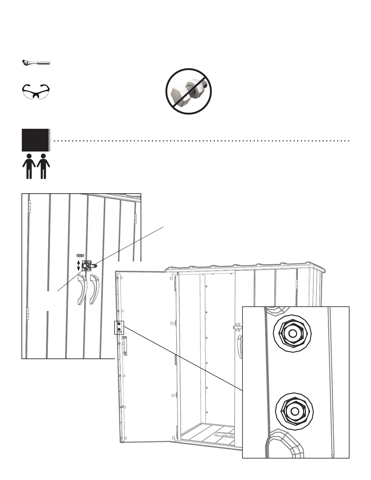 el pestillo. Mantenerlo en su lugar, abrir la puerta izquierda y apretar bien las dos (2) tuercas.