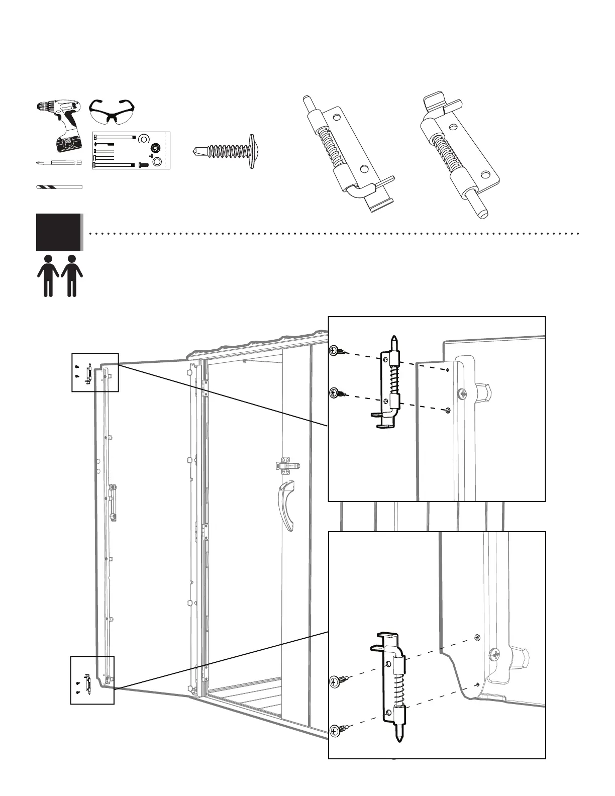 • Secure a Deadbolt (DGR & DGS) to the top and bottom of the Door at the locations shown. You can drill fi rst and then insert the