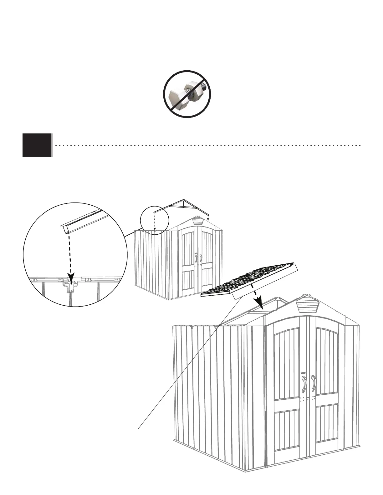 • Set a Truss Assembly into the notches on the fi rst two opposite Wall Panels. Set the Roof Panel from steps 10.2–10.3 onto