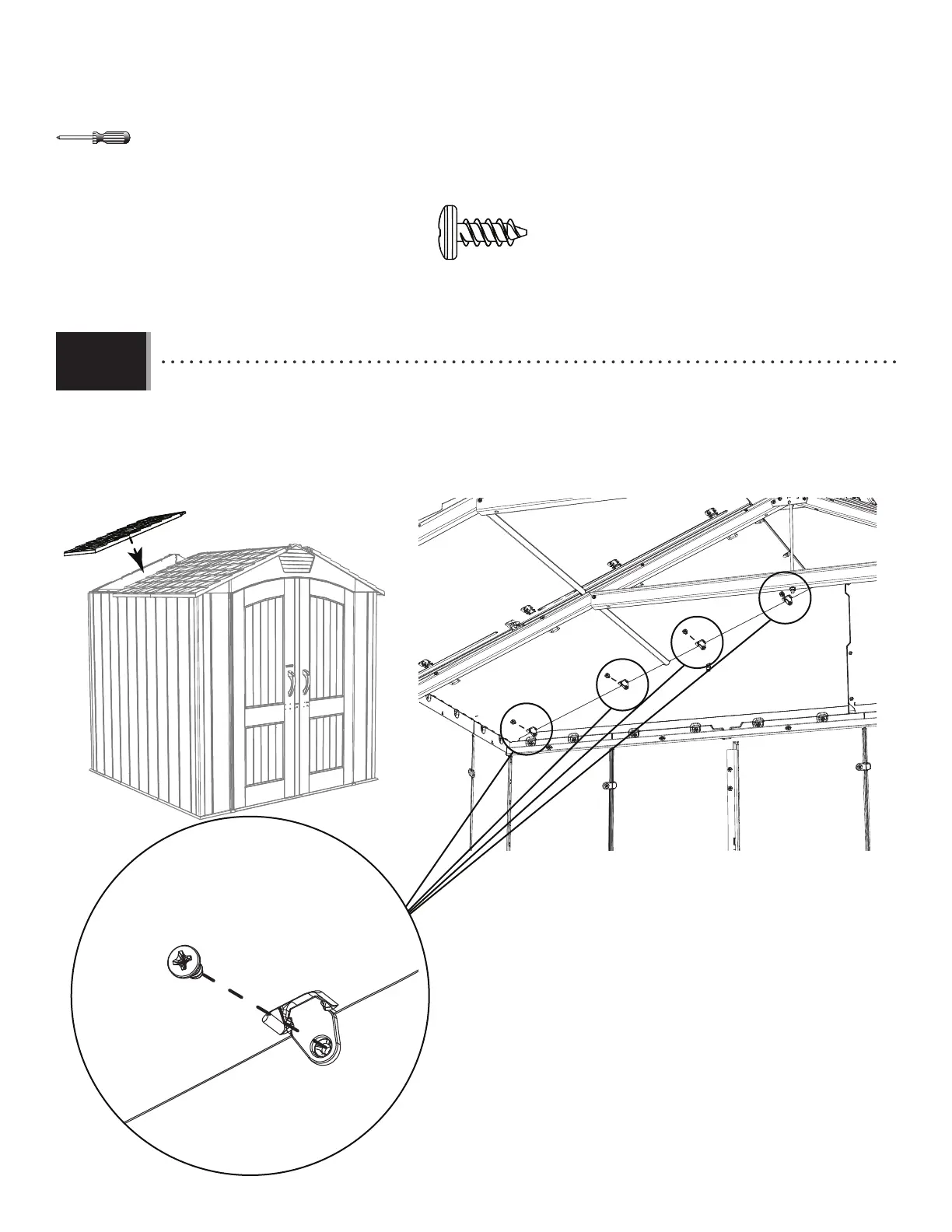 • Mettre le panneau de toit de l’étape 10.17 sur le pignon, panneau mural, et la ferme. Le fixer au pignon avec
